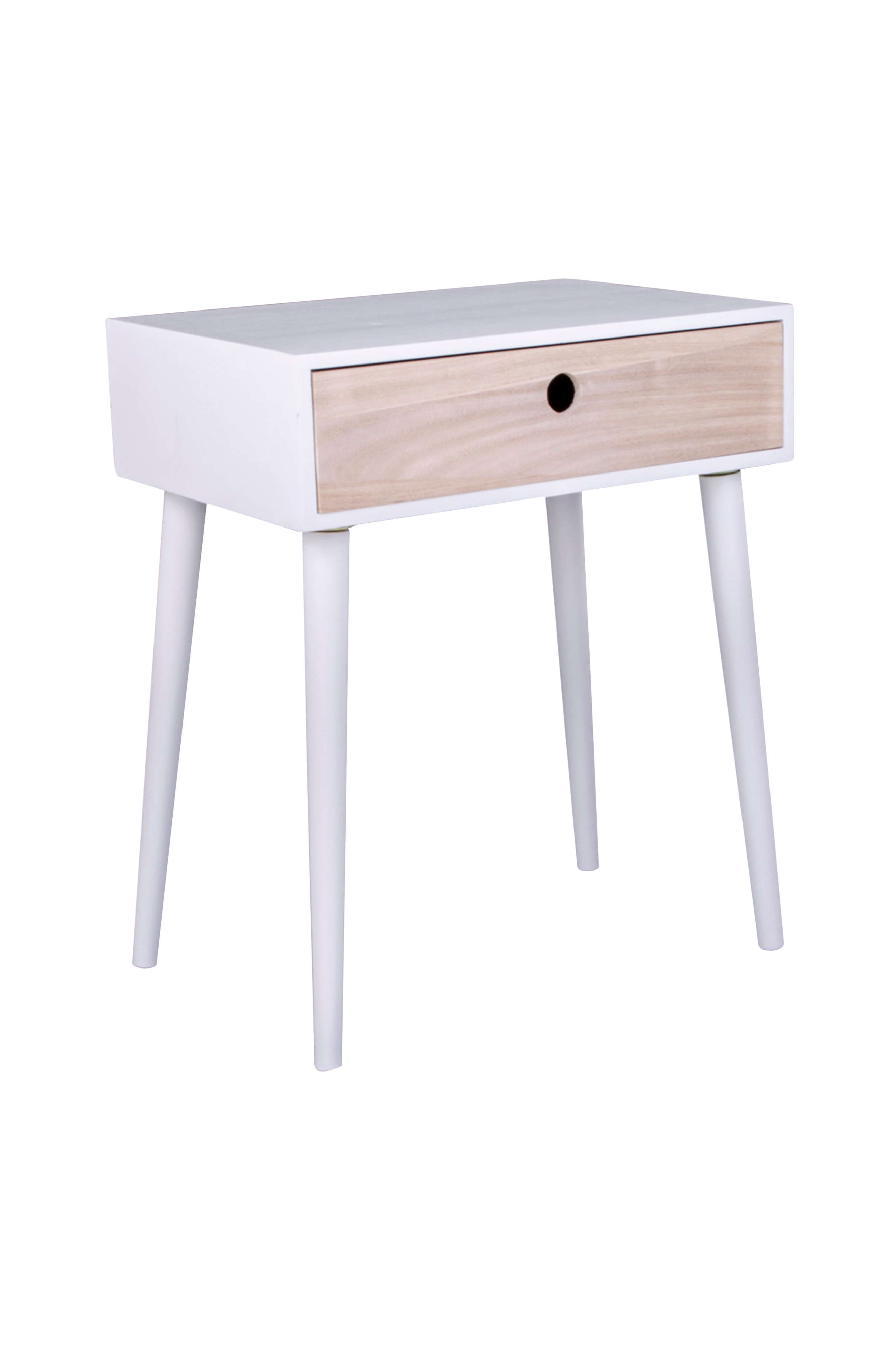 Nattbord i nordisk design med 1 skuff i naturlig tre. Materiale: Paulowniatre. Ikke montert