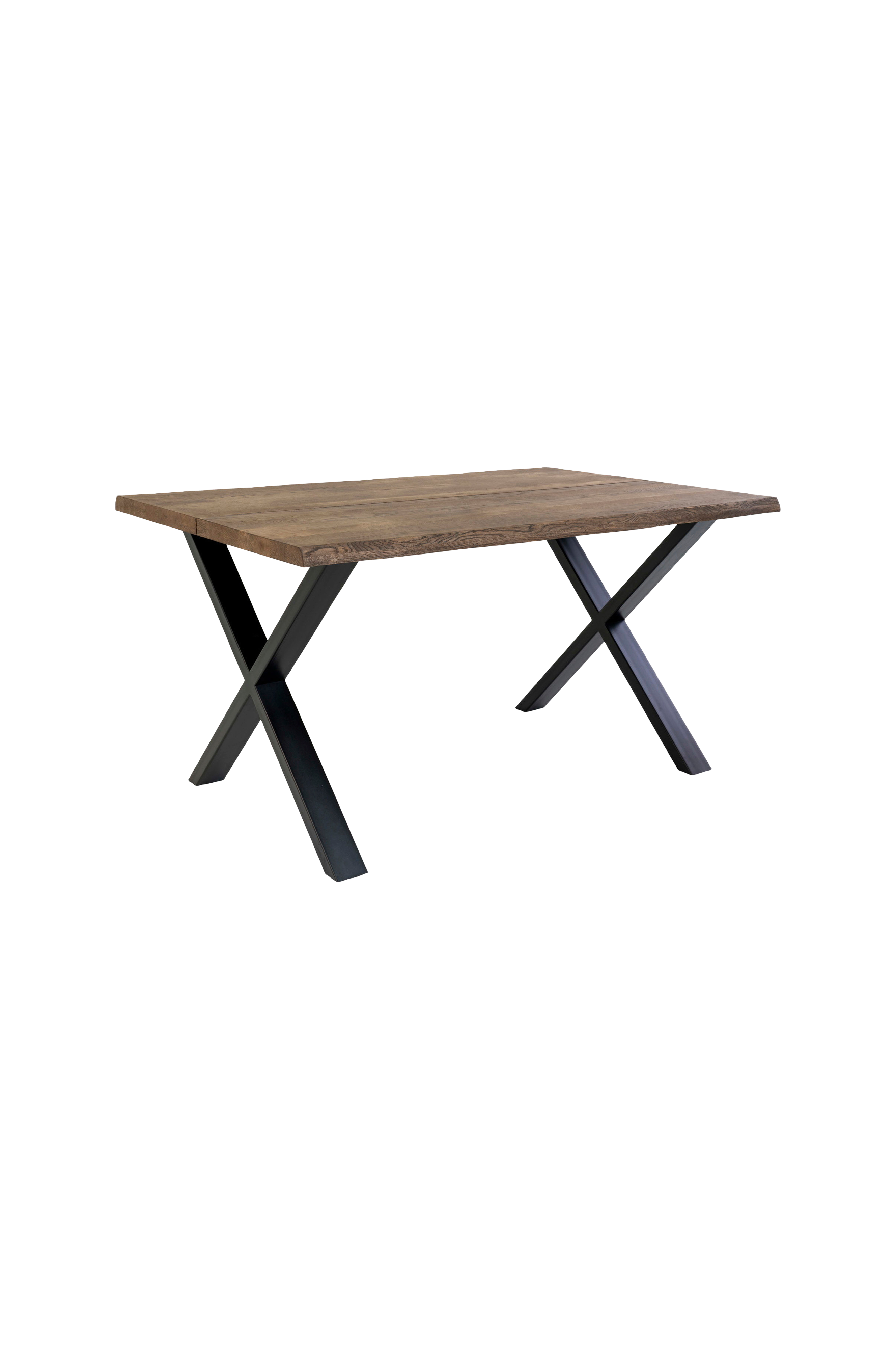 Spisebord i røykfarget oljet eik med bølgede kanter og ben i stål