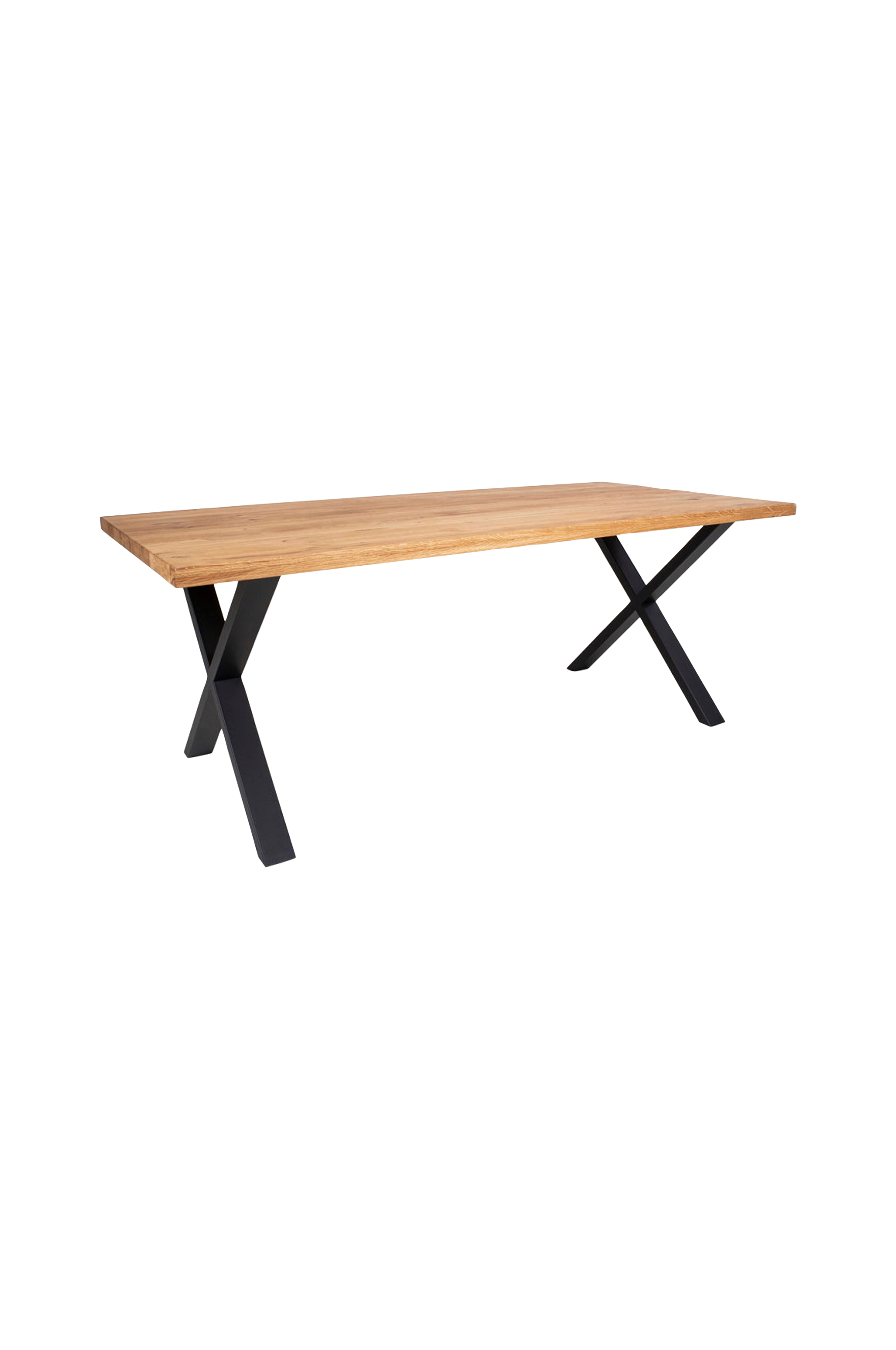Spisebord i oljet eik med linjekant. Mål: Lengde: 200 cm. Bredde: 95 cm. Høyde: 75 cm. Materiale: Eik og stål. Ikke montert.