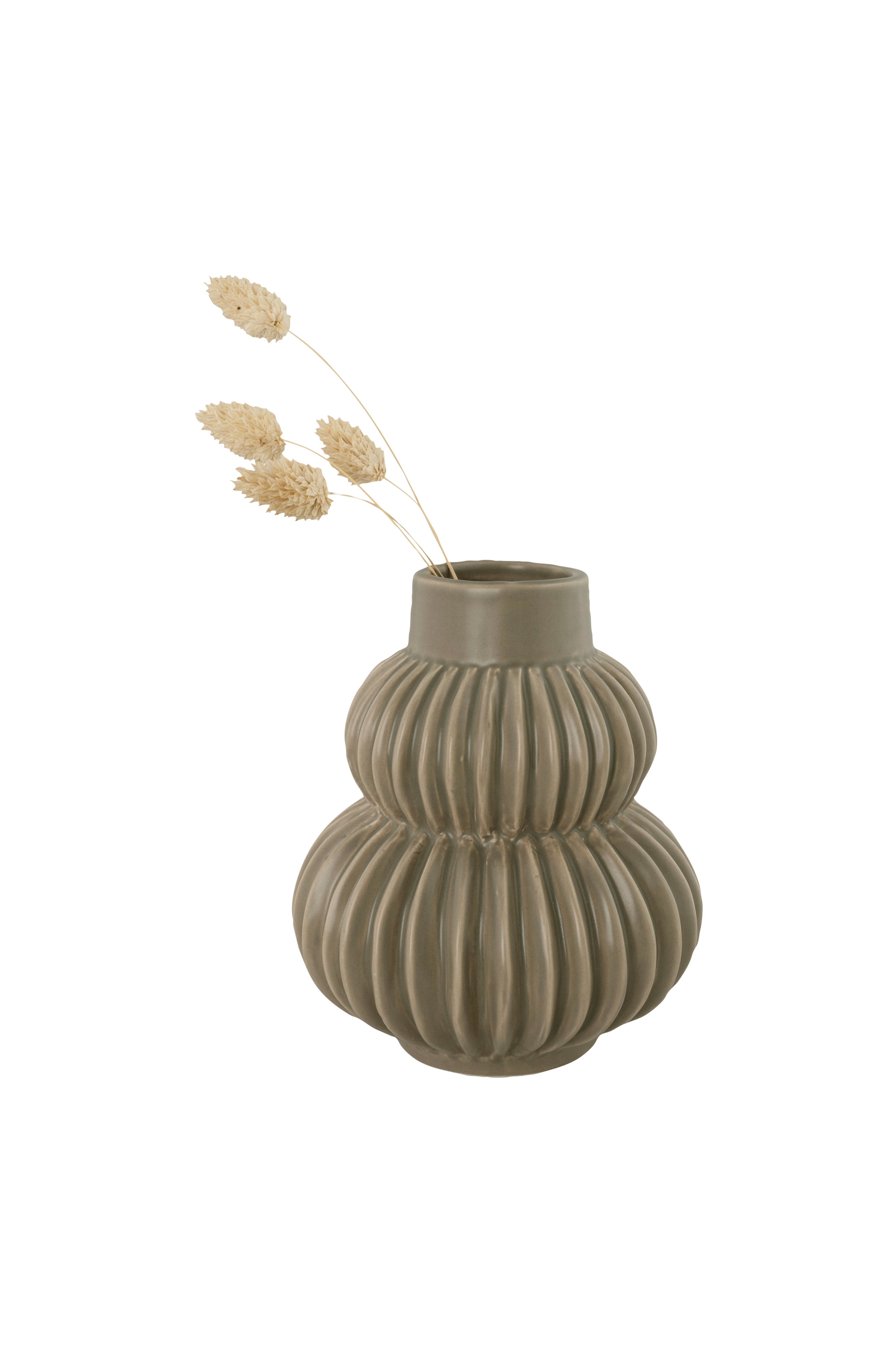 Vase av keramikk med riflet design, diameter 13,5x16 cm