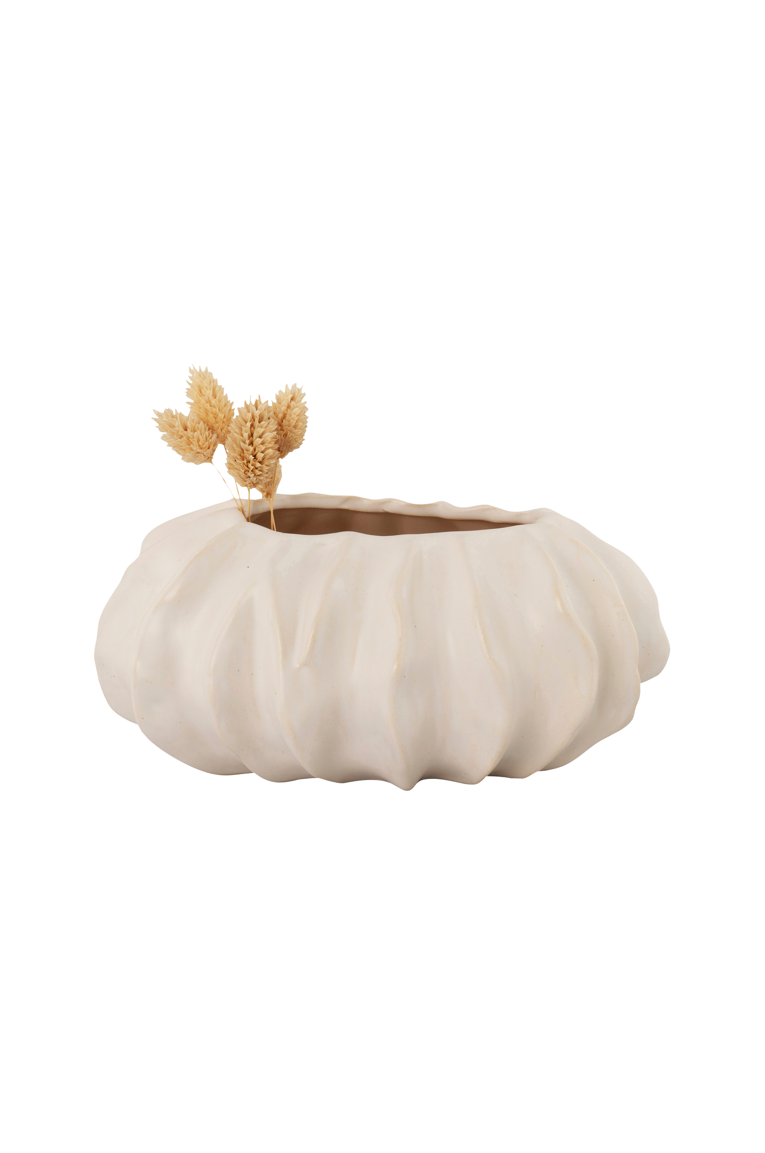 Oval vase av keramikk. Mål: 15 x 21,5 x 9,5 cm.