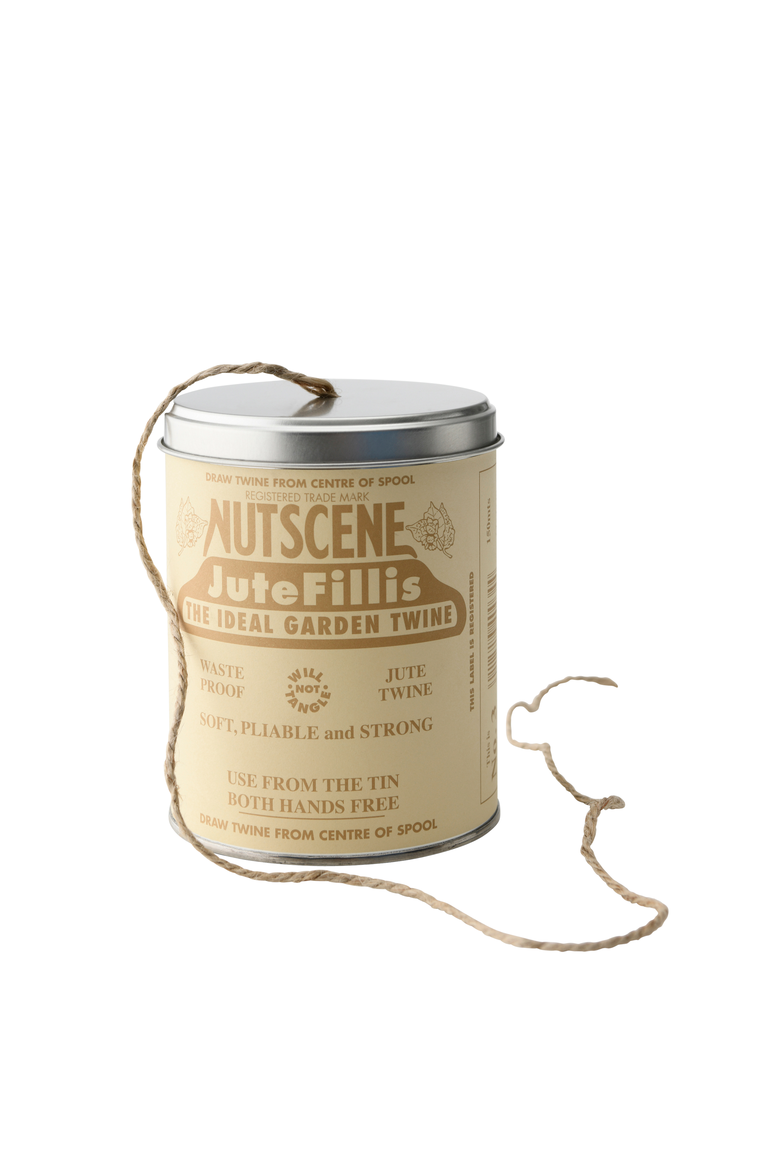 Snøre på boks; perfekt som en vakker og svært praktisk hagegave, eller rett og slett som en herlig liten gave til deg selv. Denne fine boksen rommer 120 m sterkt trelags jutegarn.