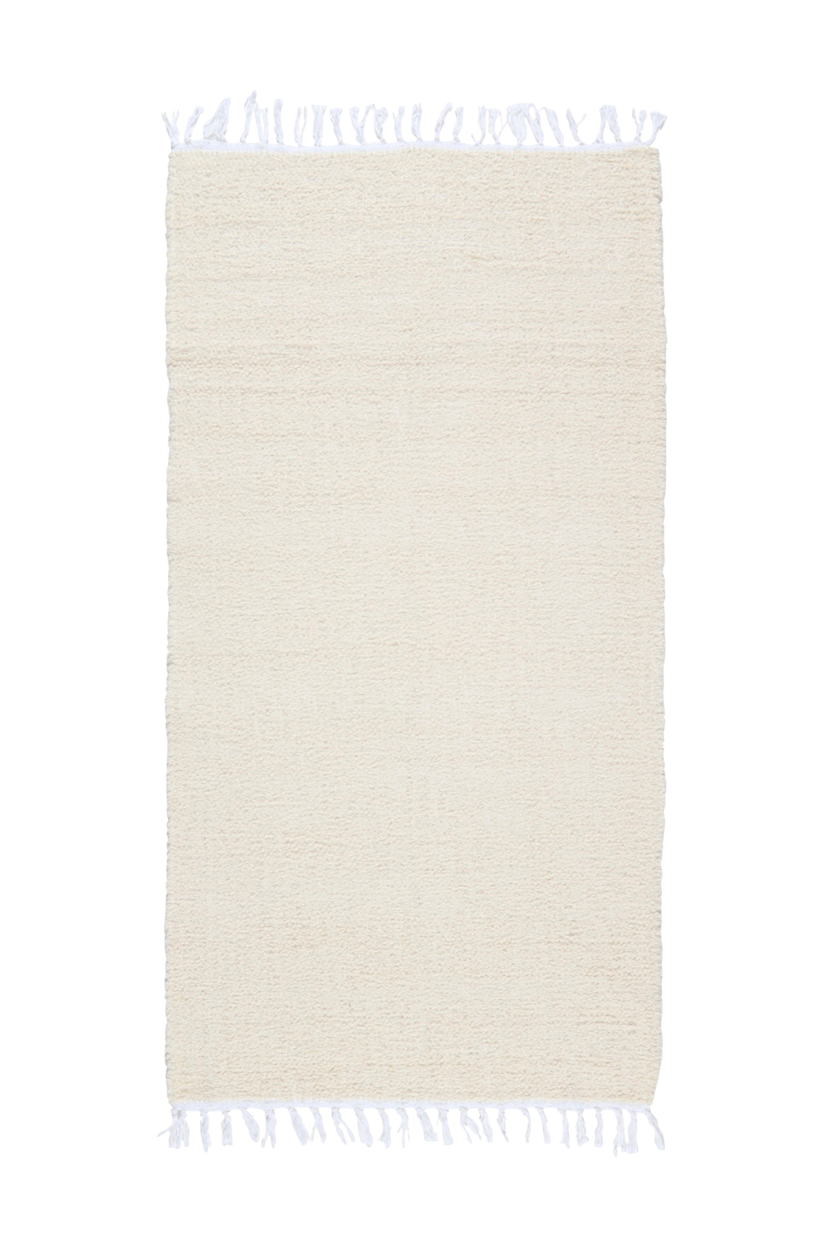 Hjo er et håndvevd garnteppe i ren bomull. Teppet har en myk og smidig kvalitet og er vevd i et mykt bomullsgarn i en varm naturfarge. Kortsidene er avsluttet med en frynse. Hjo har et tidløst, monokromt design og passer fint inn i både landlige og moderne møblerte miljøer. Et teppe som er lett å plassere, og som er fint på for eksempel kjøkkenet eller i hallen.