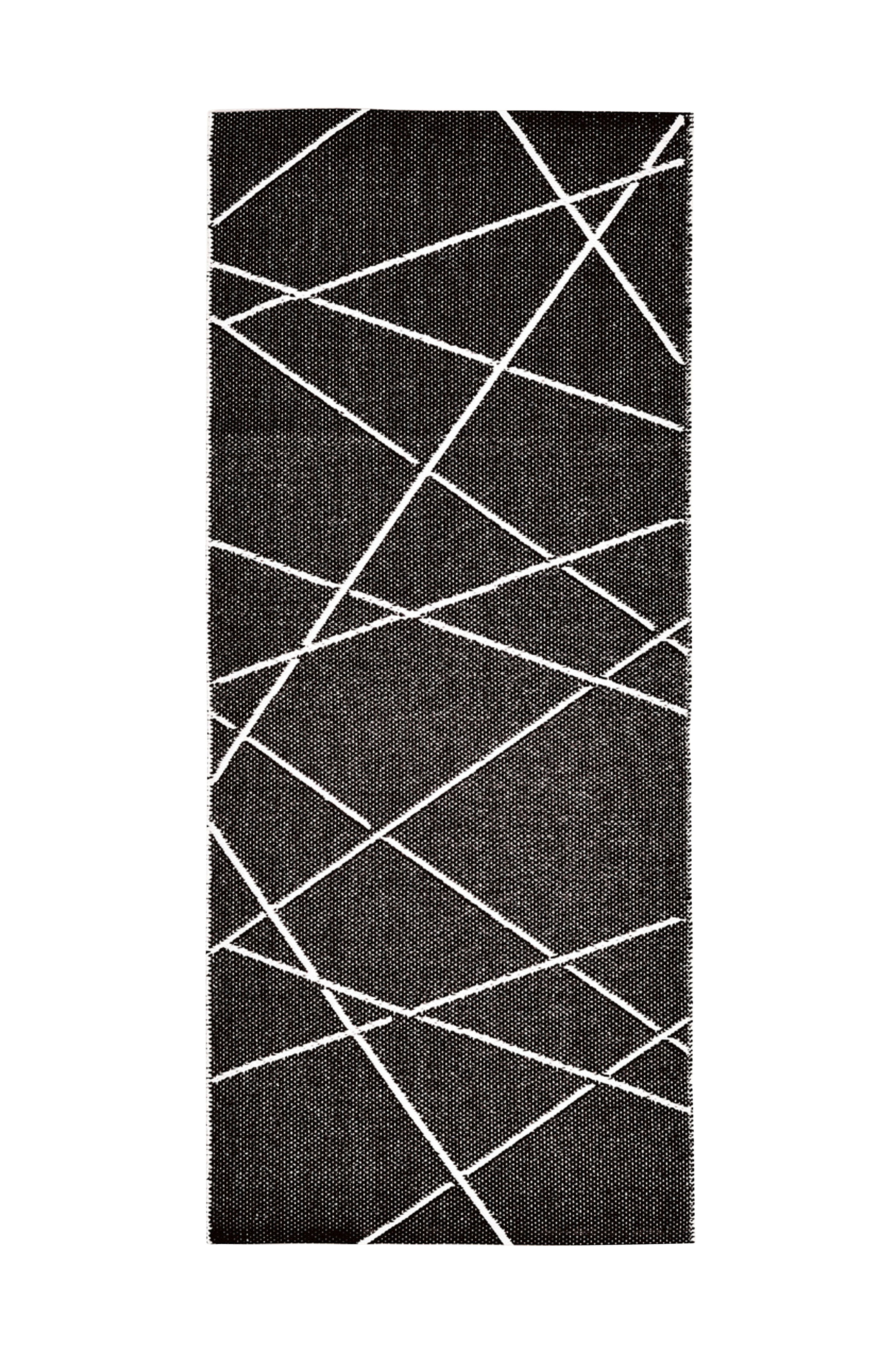 Lettstelt, vevd plastteppe med effektfulle kontrastlinjer. Et robust teppe som er vendbart. Kan vaskes i maskin på 30°. Et perfekt teppe til kjøkken eller vaskerom.