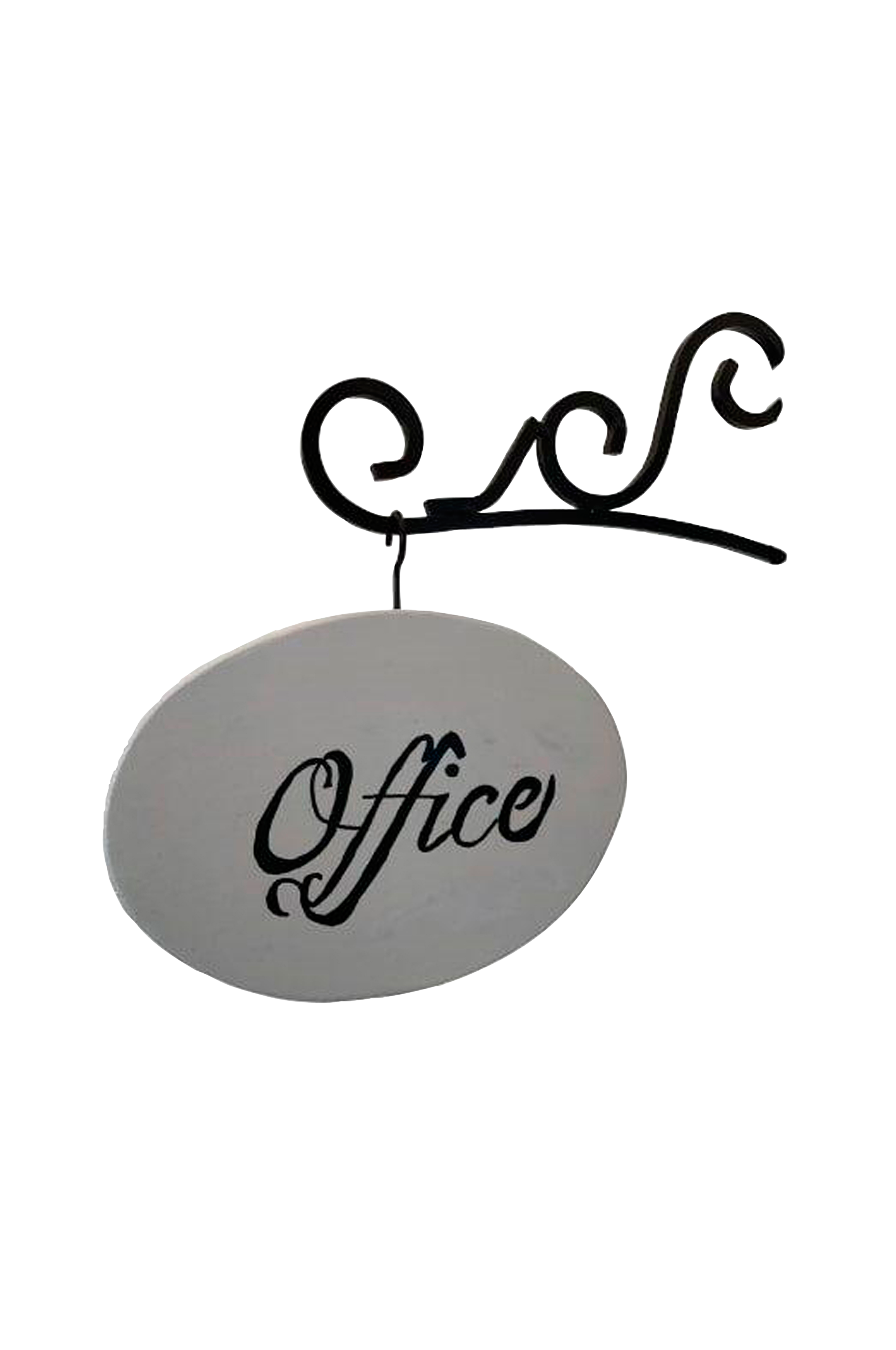 Superfint skilt med svart opphengsstativ.Unikt, finnes kun i dette eksemplaret.Office - heng skiltet utenfor hjemmekontoret.Opphengets lengde: 35 cmSkiltets lengde: 32 cm