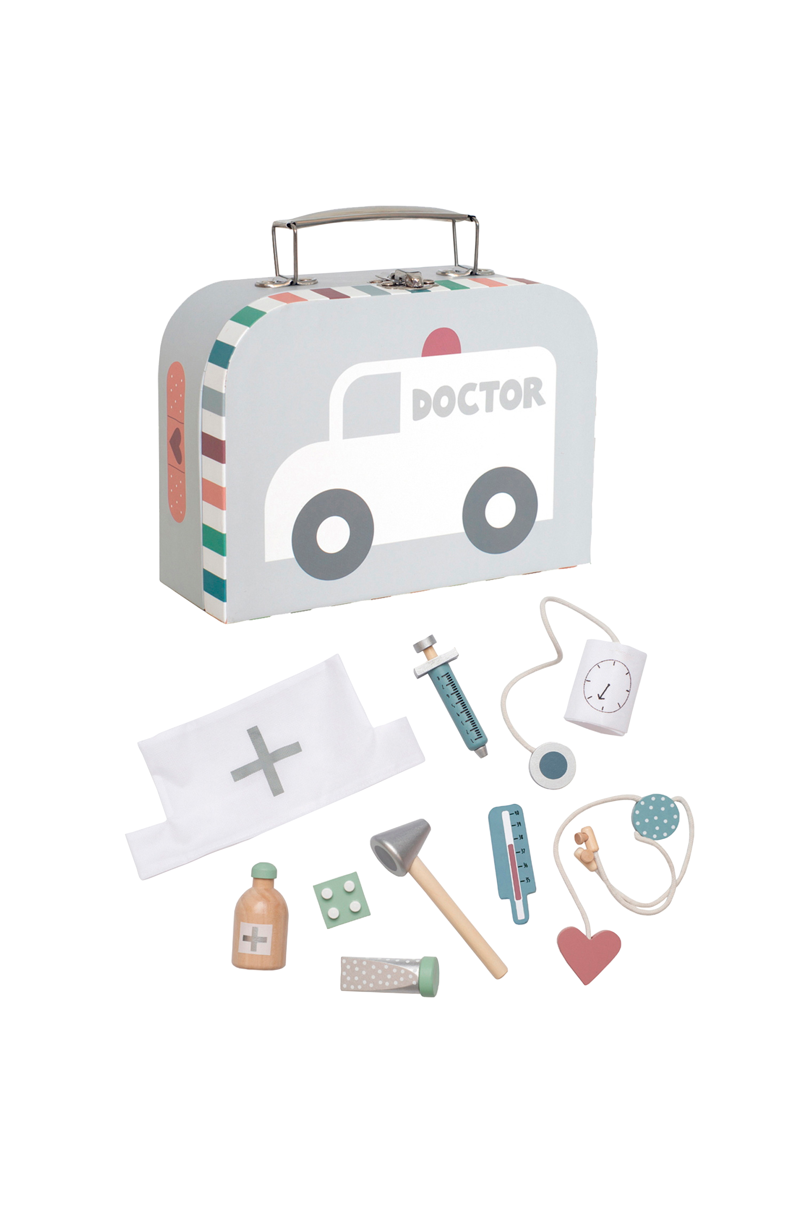 Barnet ditt kommer til å ha mye moro med denne doktorvesken som oppmuntrer til mye lek. Her finnes alt utstyret en liten doktor kan tenkes å behøve. Vesken inneholder en rekke morsomme redskaper:
