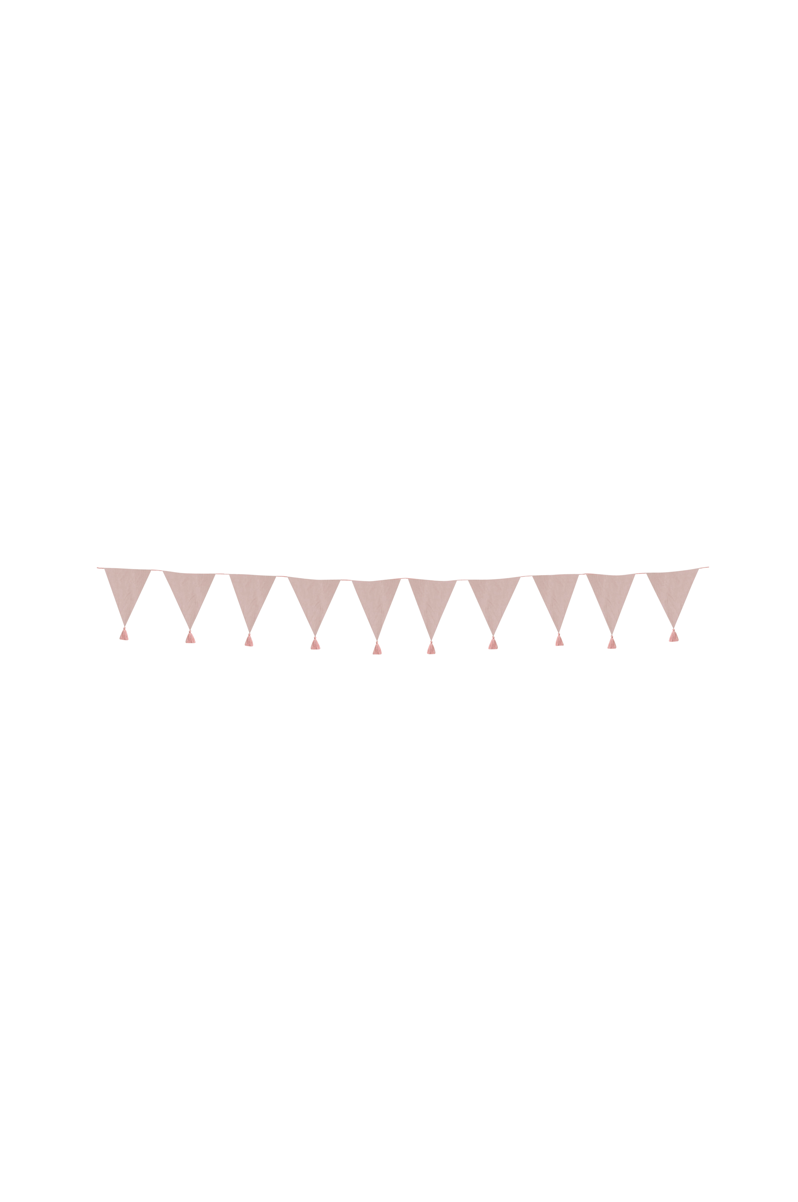 Stoffvimpel i lys rosa med dusker. Stoffvimplene blir en fin interiørdetalj på barnerommet, til å henge på veggen, over sengen eller langs en sengehimmel. Lengde 4 m.
