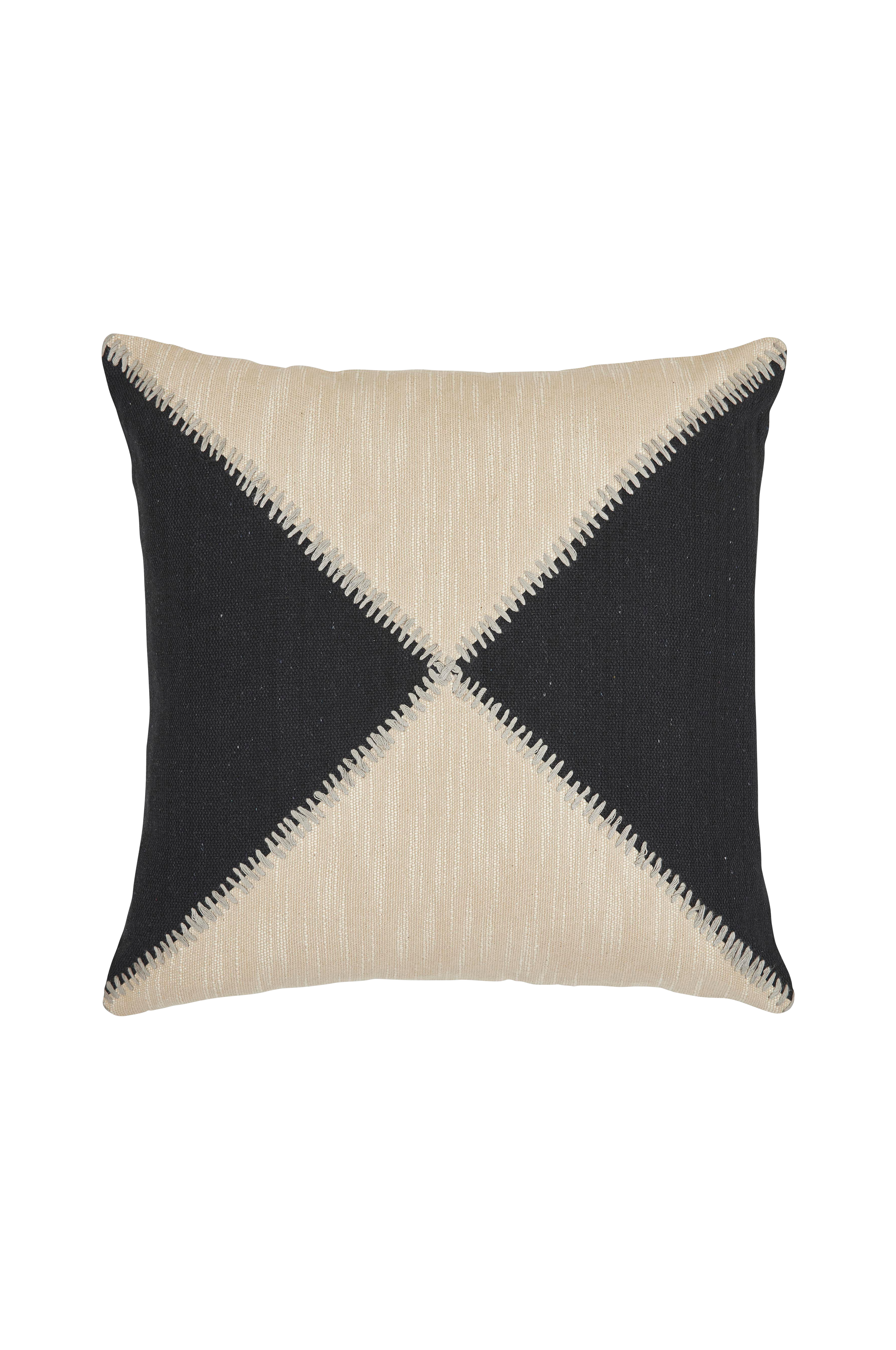 Handstich er en håndlaget pyntepute med spennende tekstur og design. Det svarte og beige mønsteret er tidløst, og vil alltid være et sikkert valg i sofaen. Puten tilfører en følelse av ro med sitt jordnære uttrykk. Det gjør at den passer inn i de aller fleste omgivelser