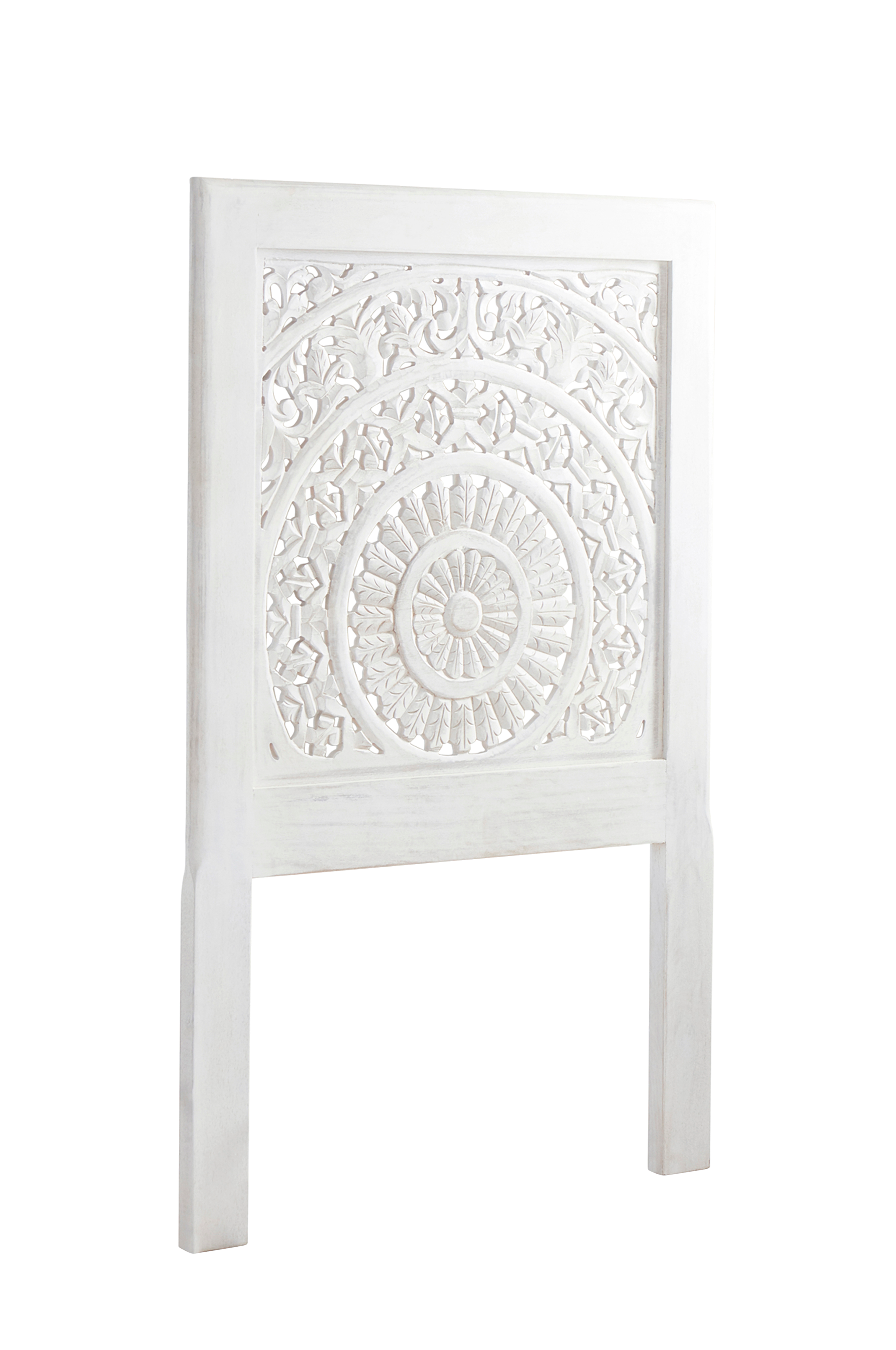 Utskåret mønster og hvitsåpet sjarm. Med AIZA sengegavl får soverommet ditt en ny og koselig karakter. Den fine sengegavlen er et ekte håndverk der mønsteret er utskåret for hånd og det føles i den rustikke stilen.