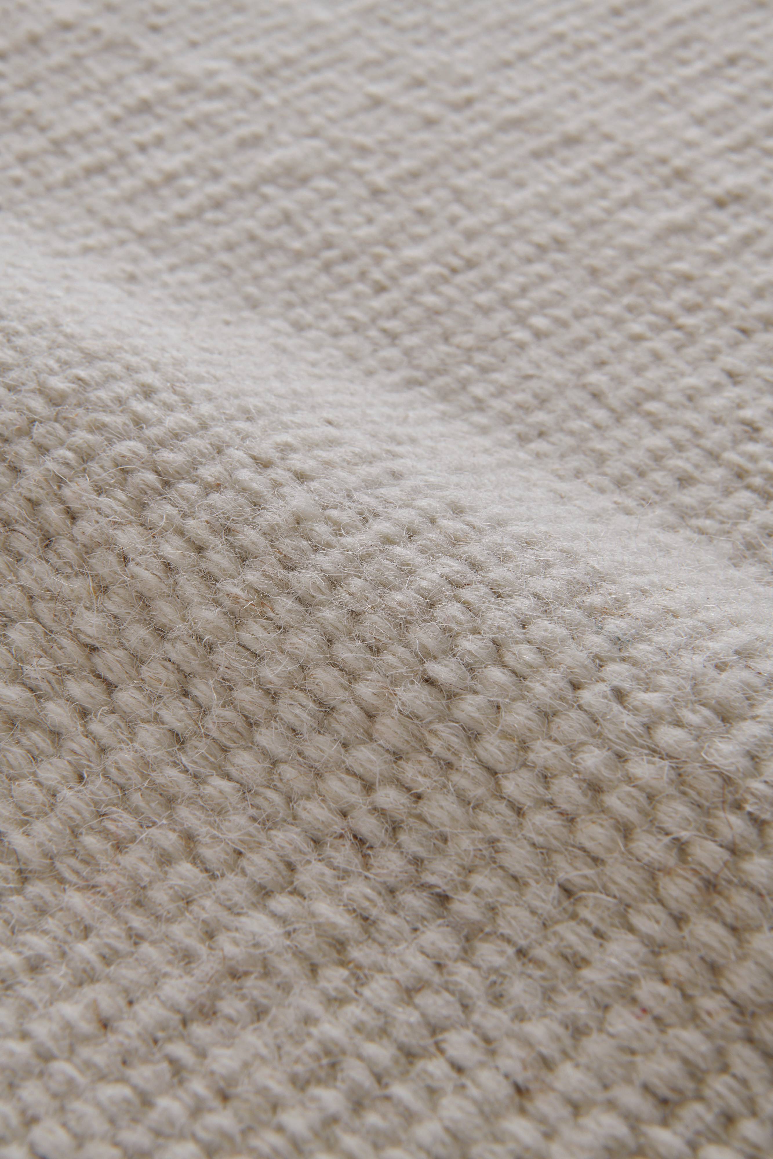 Håndvevd teppe av ull og polyester med varp av bomull og nylon. Den fine kvaliteten gjør at teppet gir et naturlig inntrykk. 1400 g/m².