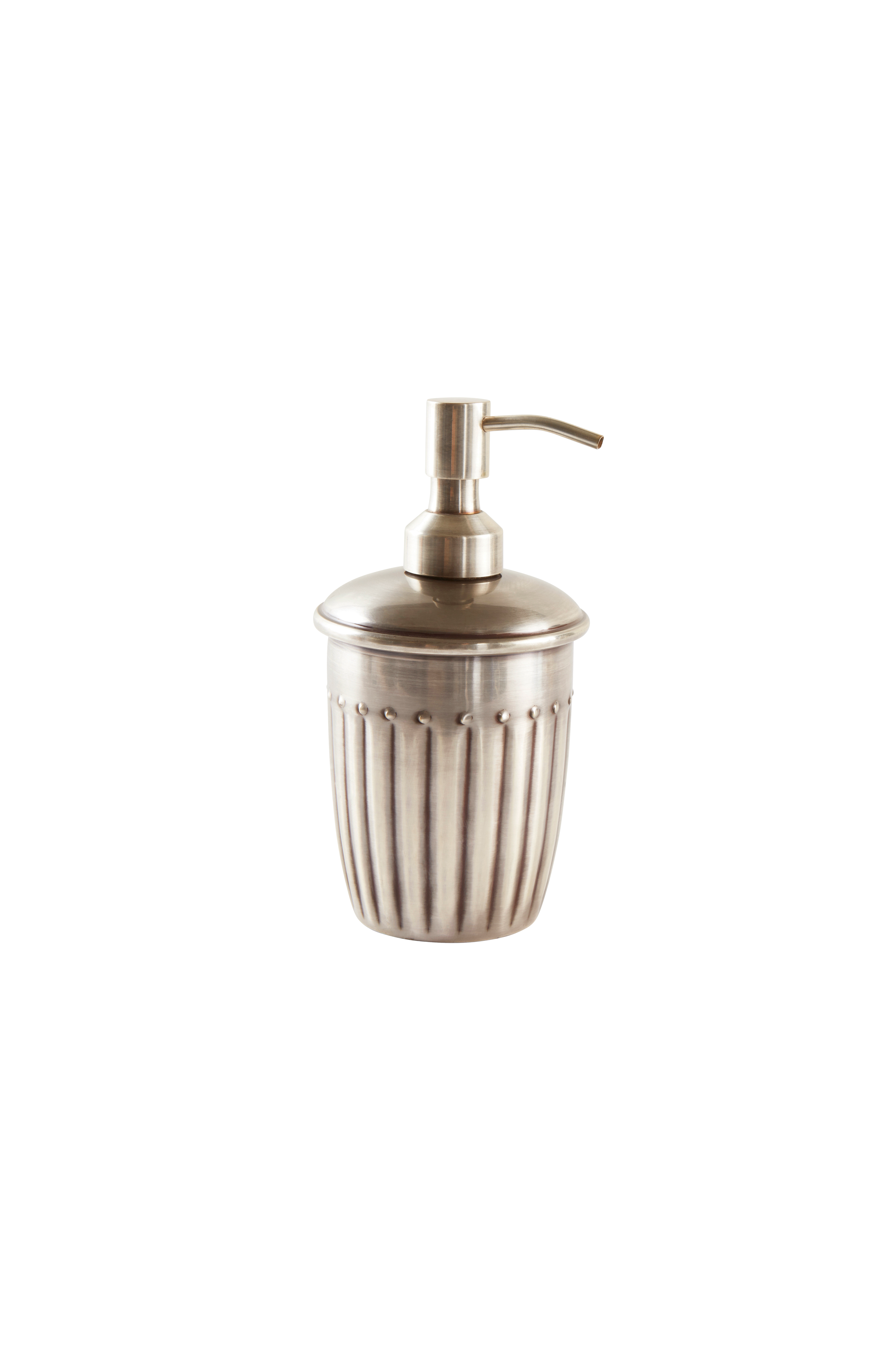 Såpedispenser av metall med antikk sølvfarge. Lokket med pumpen kan tas av, og du fyller enkelt på med din flytende favorittsåpe. Baderomserien ALIDA gir en gammeldags, romantisk følelse med sin antikke sølvfarge og nostalgiske form.