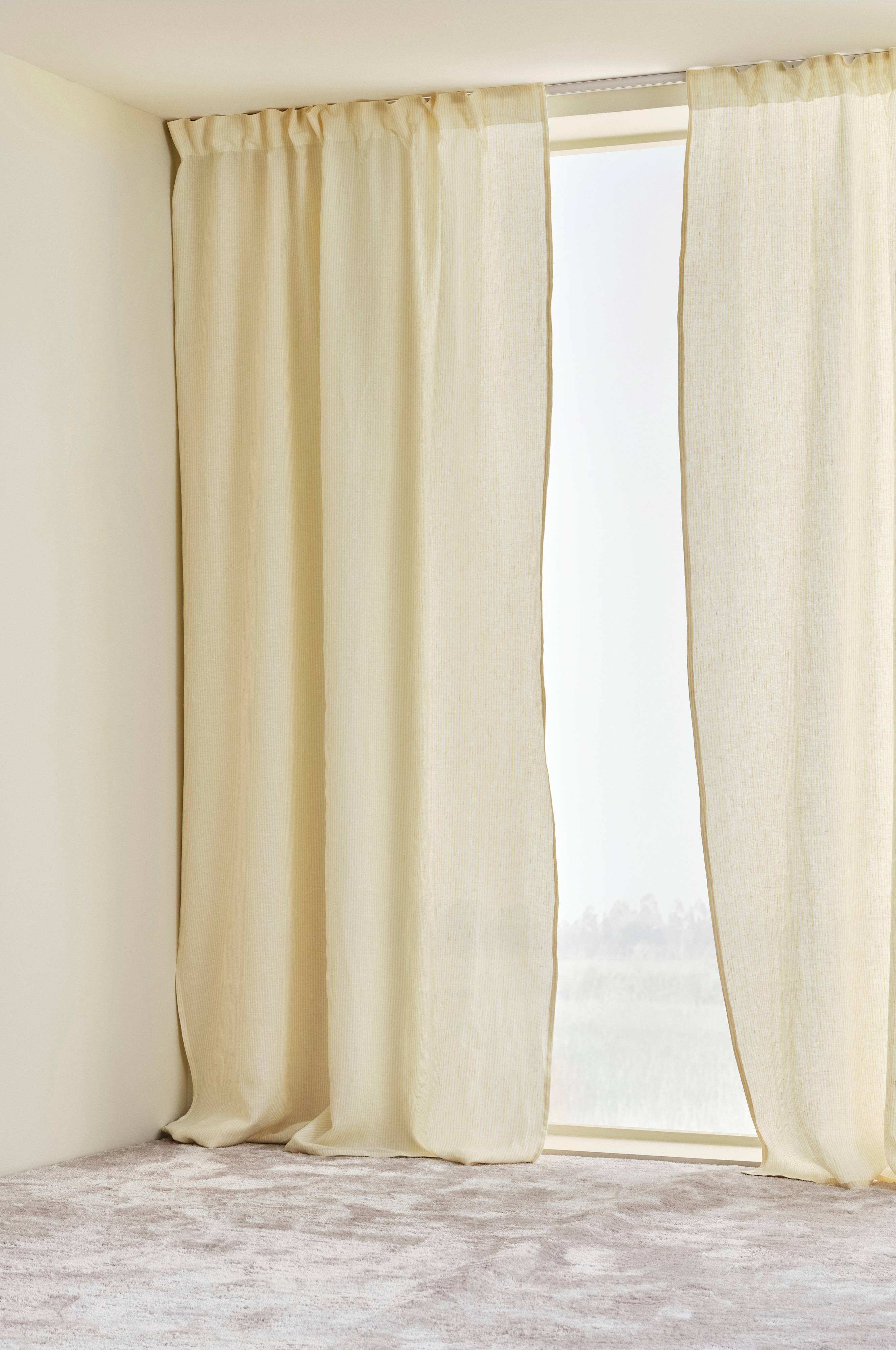 Gardinens lengde kan variere noe ved levering, da naturmaterialer som lin påvirkes mer av temperatur enn syntetiske materialer. En variasjon på 1-2 cm fra de oppgitte målene er helt naturlig.