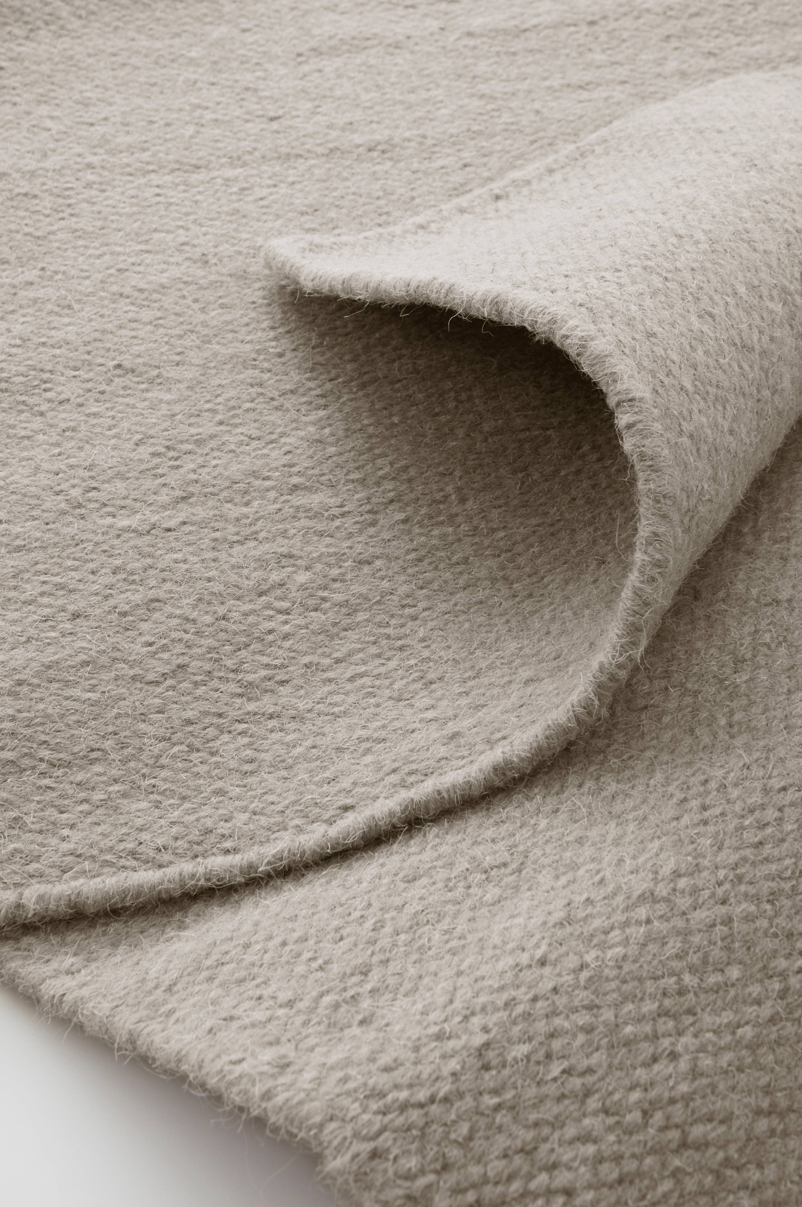 Håndvevd ullteppe av RWS-sertifisert ull kombinert med bomull. Det glattvevde teppet er ensfarget og finnes i mange herlige nyanser. Ull er naturlig smussavvisende og både solid og lettstelt. Tykkelse 4 mm. 1200-1300 g/m².
