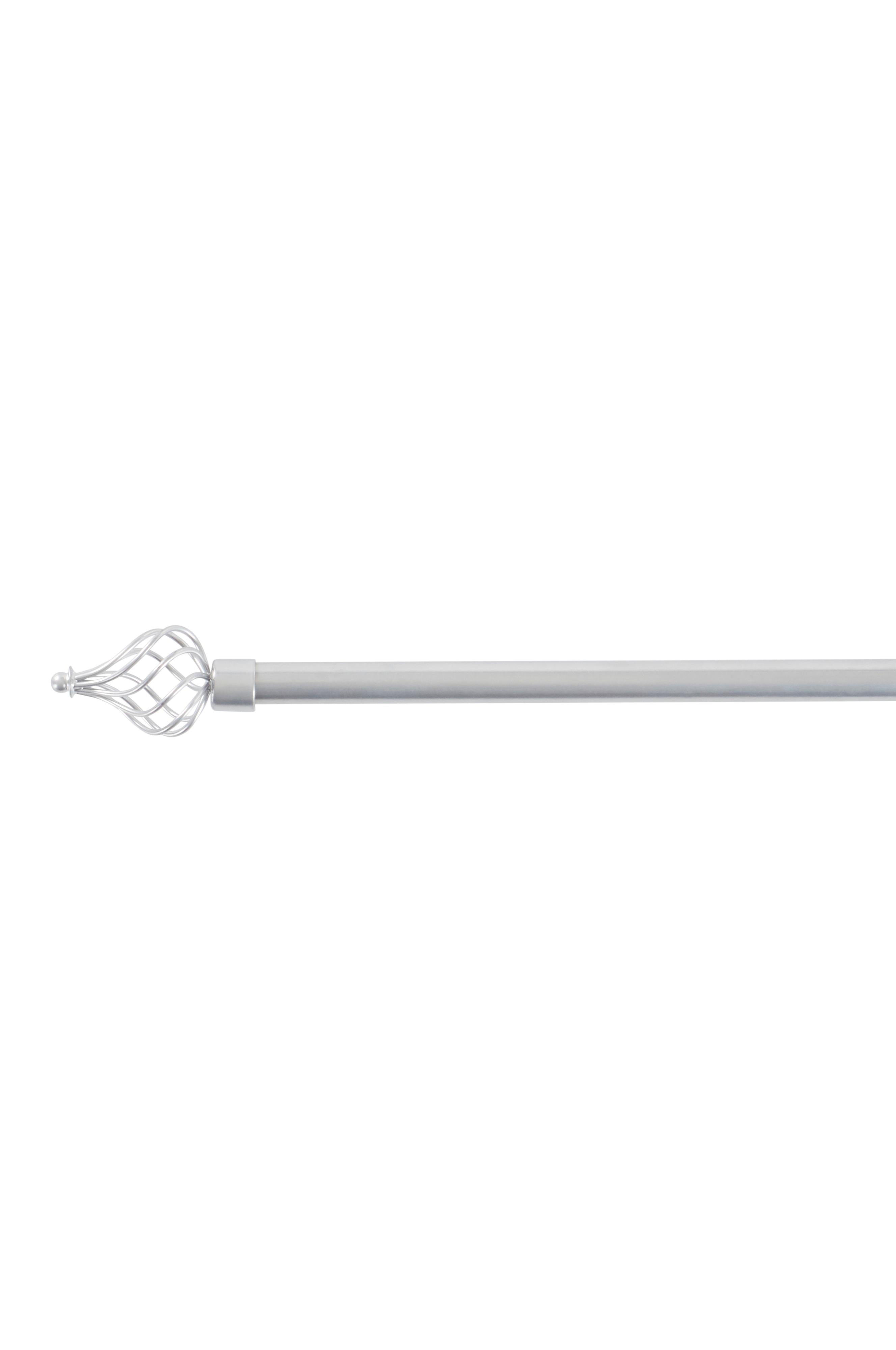 Gardinstang av jern med fint tvinnede, runde endeknotter av jern. Gardinstangens lengde er justerbar. Endeknottene skrues på. Tre veggfester, skruer og plugg er inkludert. Husk at det alltid er underlaget som bestemmer hvilken type festemetode som er best egnet ved montering.