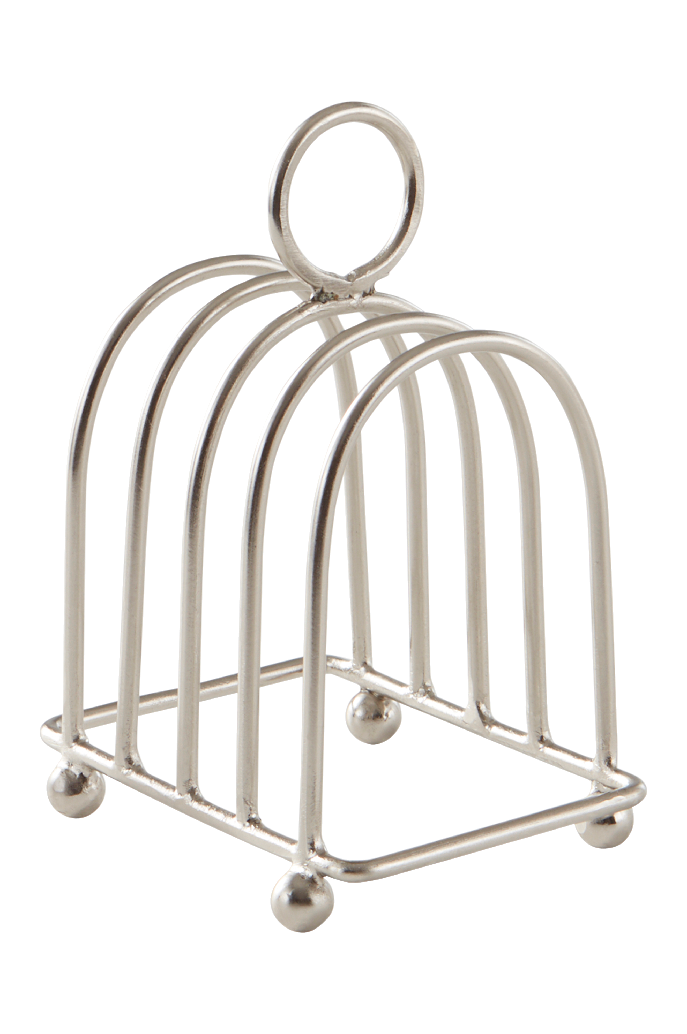Brødstativ av jern som gir herlig tyngde og følelse. Brødstativet gjør frokostbordet herlig klassisk, og rommer seks ristede skiver. Runde små knotter gjør at brødet kommer litt opp fra bordet. Med ringen på toppen løfter du lett brødskivene for å by andre rundt bordet. Metallet har sølvfarget belegg.