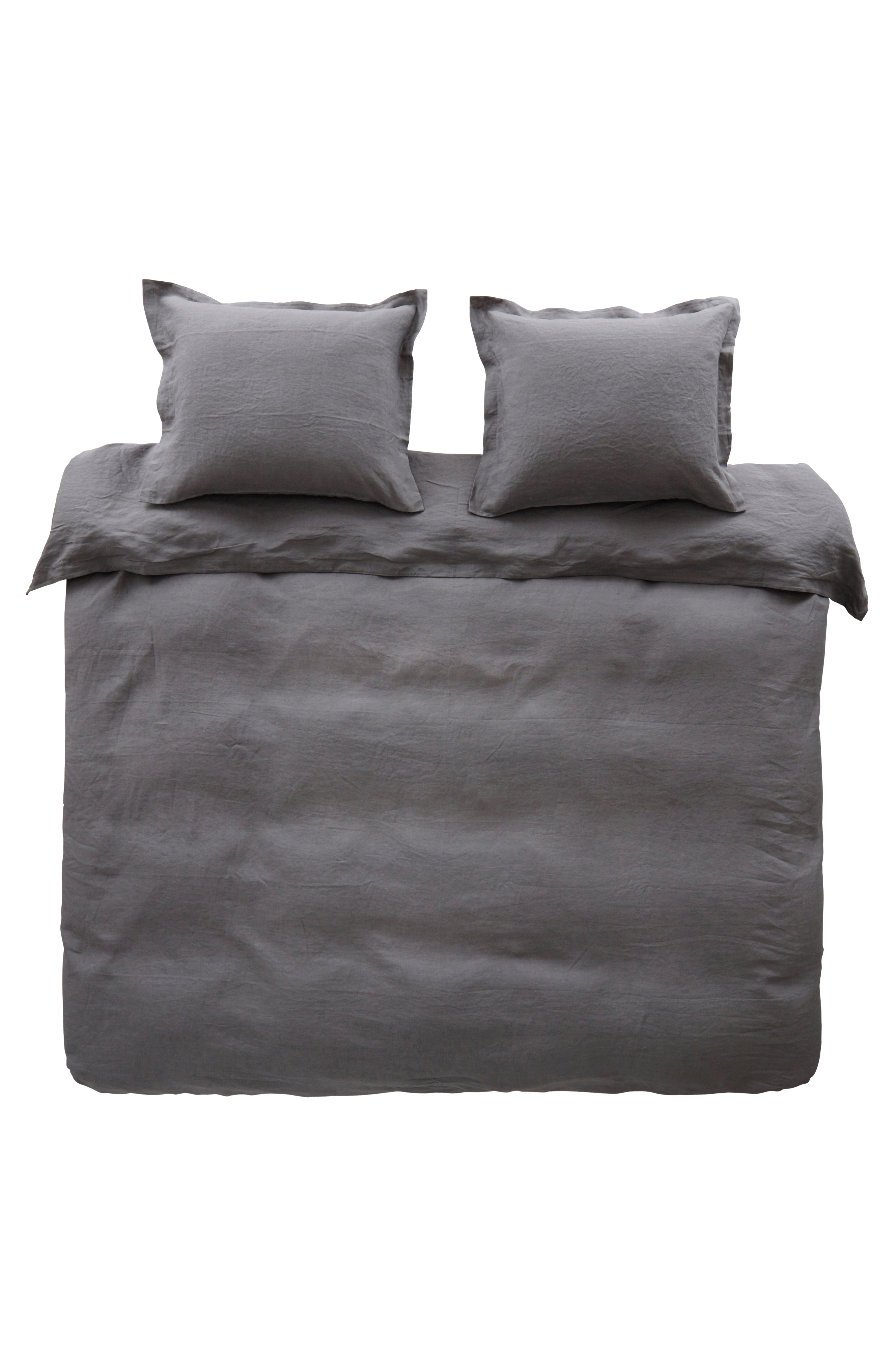 Sengesett i 3 deler av plaggvasket lin. Det er lett å elske lin, dets egenskaper, følelse og struktur. Lin varmer når det er kaldt, og er sval å sove i når det er varmt. Trådtetthet på 110 tc. (Trådtettheten forteller om antallet tråder, thread counts, pr. kvadrattomme i et stoff. Jo høyere trådtetthet, desto høyere kvalitet. Unntaket er lin som ofte veves løsere for å få den riktige følelsen.)