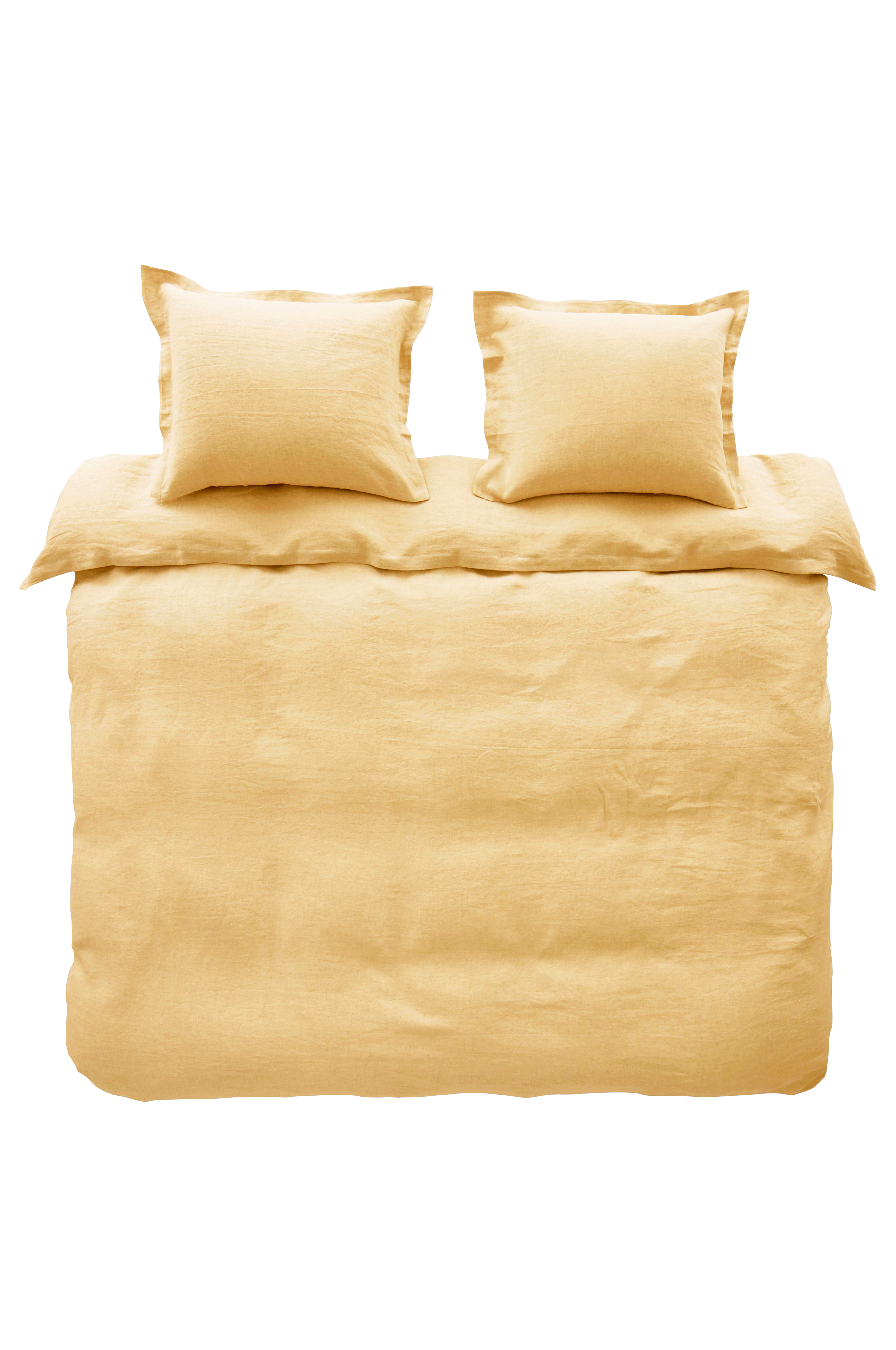 Sengesett i 3 deler av plaggvasket lin. Det er lett å elske lin, dets egenskaper, følelse og struktur. Lin varmer når det er kaldt, og er sval å sove i når det er varmt. Trådtetthet på 110 tc. (Trådtettheten forteller om antallet tråder, thread counts, pr. kvadrattomme i et stoff. Jo høyere trådtetthet, desto høyere kvalitet. Unntaket er lin som ofte veves løsere for å få den riktige følelsen.)
