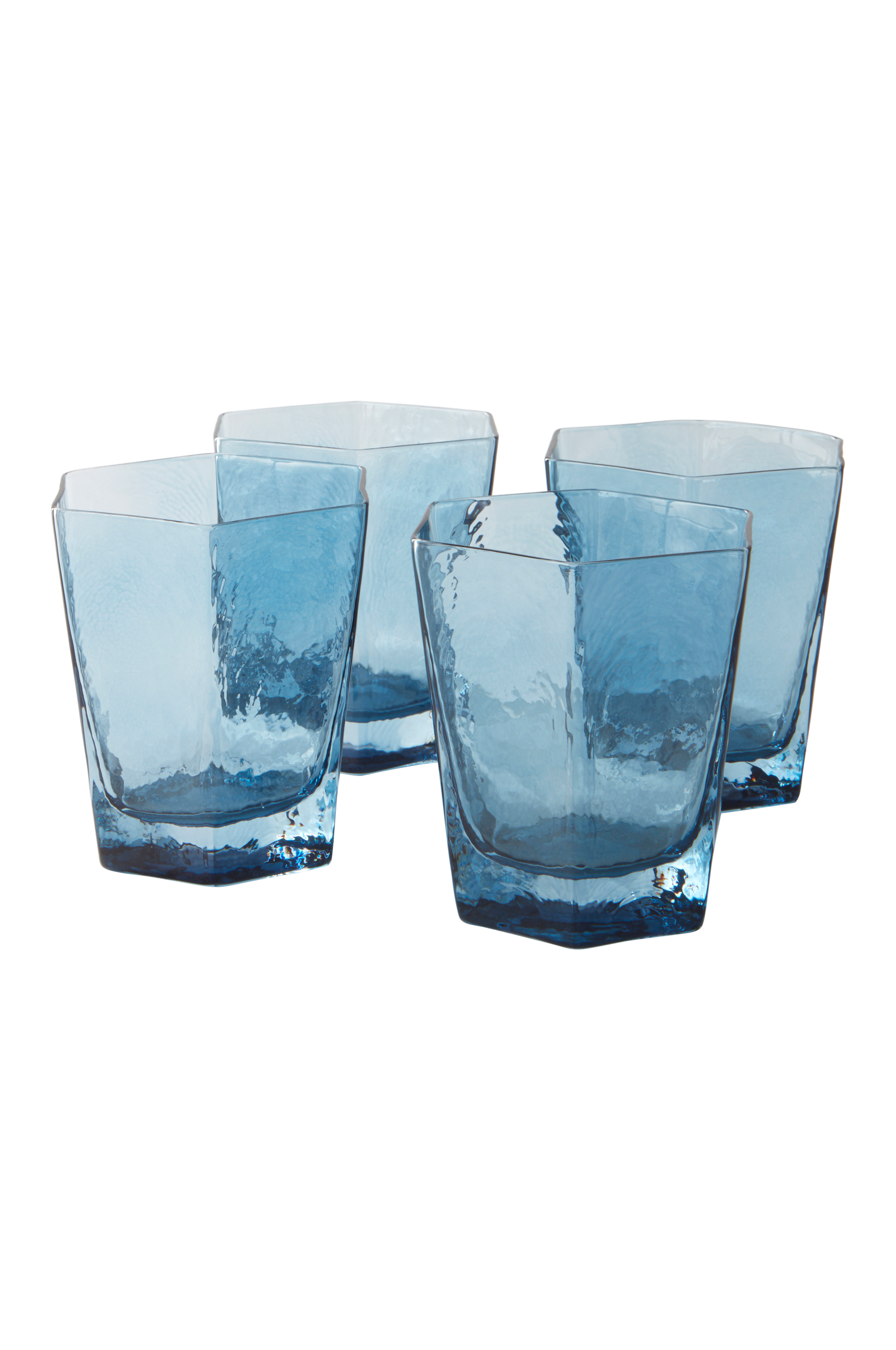 4-pk lave glass av kadmiumfritt glass. I serien AMORY er glassene 6-kantet med en pen, avsmalnende form. Serien forgylles av at glassets overflate har uregelmessig tekstur - kalde drikker føles ekstra leskende. Det lave glasset passer perfekt som vannglass, alene eller ved siden av vinglasset når du dekker på. 38 cl/glass. Vekt 294 g.
