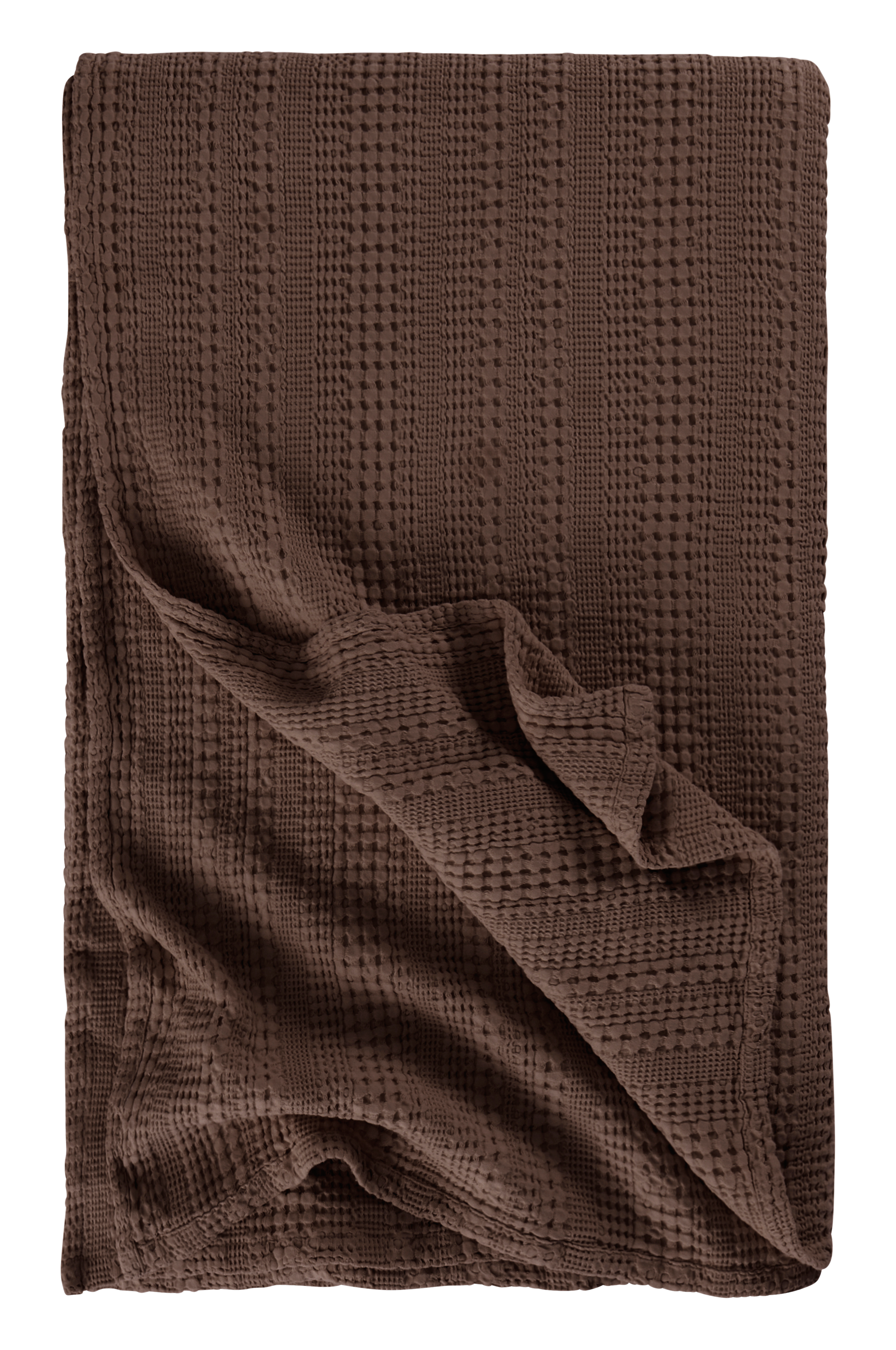Sengeteppe i herlig myk og lett bomull med blandet vaffelmønster som gir et fint stripemønster. Sengeteppet passer til enkeltseng og er plaggvasket. Det innebærer at det er vasket etter søm for å bli ekstra mykt og smidig. Et litt boblete og livlig sengeteppe er like fint når sengen er redd opp som når det ligger løst og ledig over fotenden av sengen eller er pledd på sofaens armlener.