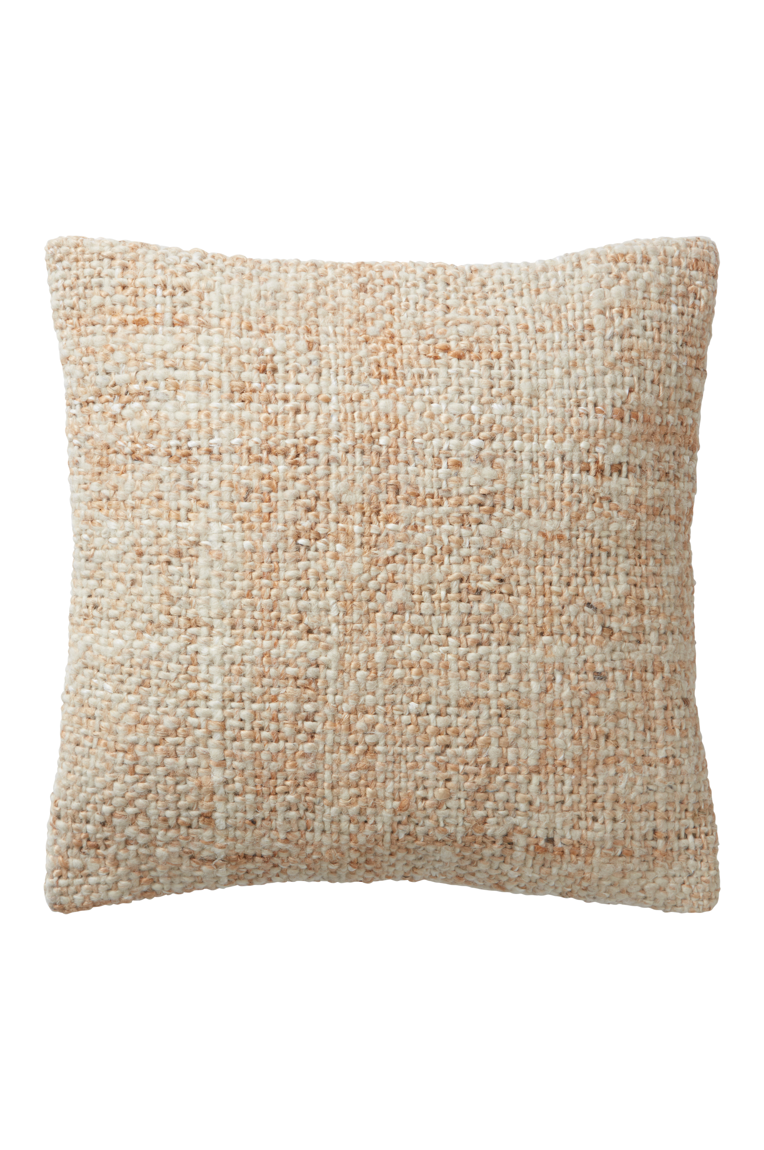 1-pk håndlaget putetrekk med vevd forside av grovt, melert garn. Stoffet på forsiden er av jute og ull. Vevd naturhvit bakside av bomull med skjult glidelås. Forsiden er fôret med samme bomullsstoff som er på baksiden.