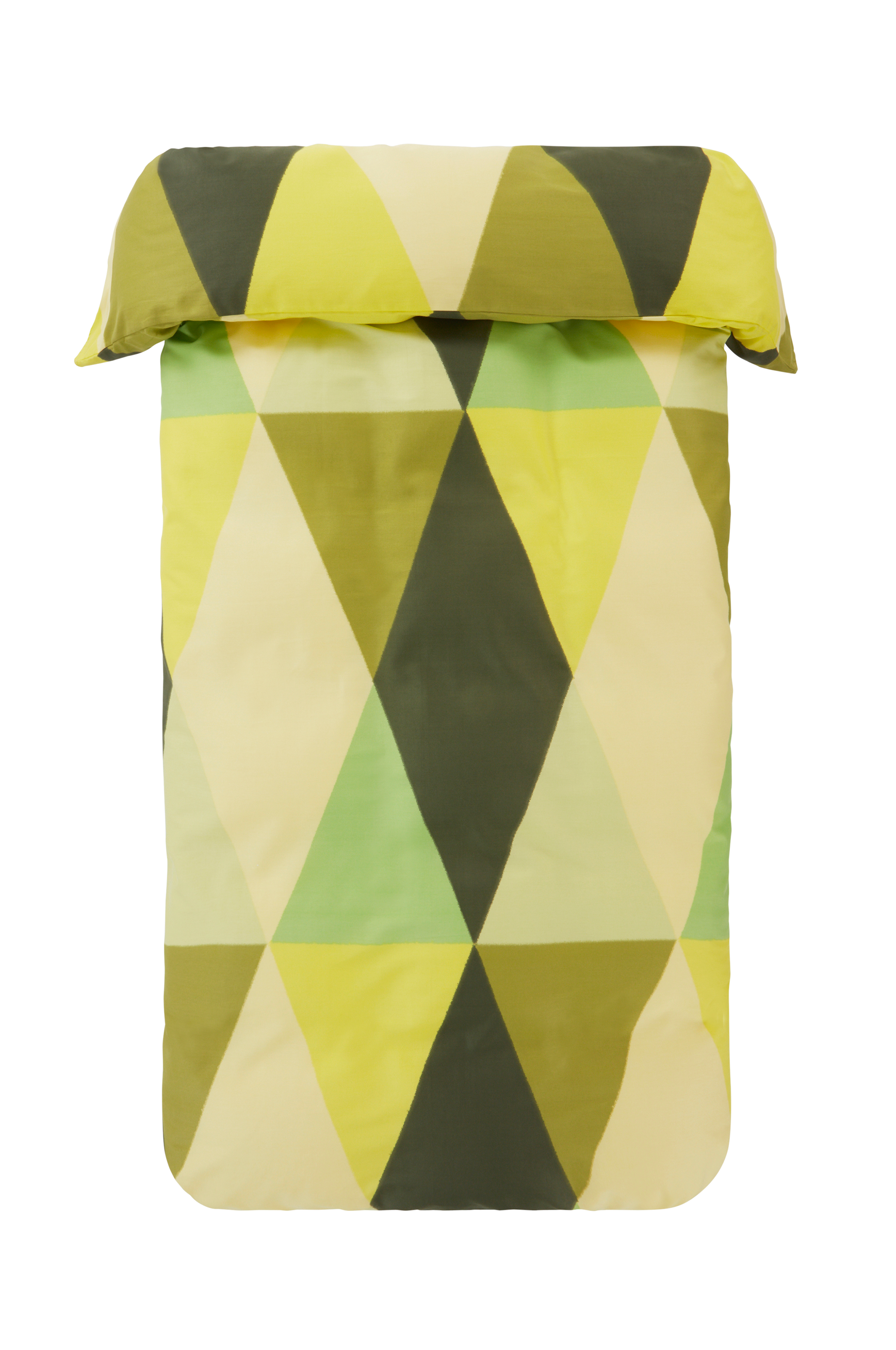 Dynetrekk av bomullssateng. Sateng er et tett, glatt stoff med fin glans. Dynetrekket har kontrastsøm, og lukkes med trykknapper. Trådtetthet på 200 tc. (Trådtettheten forteller om antallet tråder, thread counts, pr. kvadrattomme i et stoff. Jo høyere trådtetthet, desto høyere kvalitet).