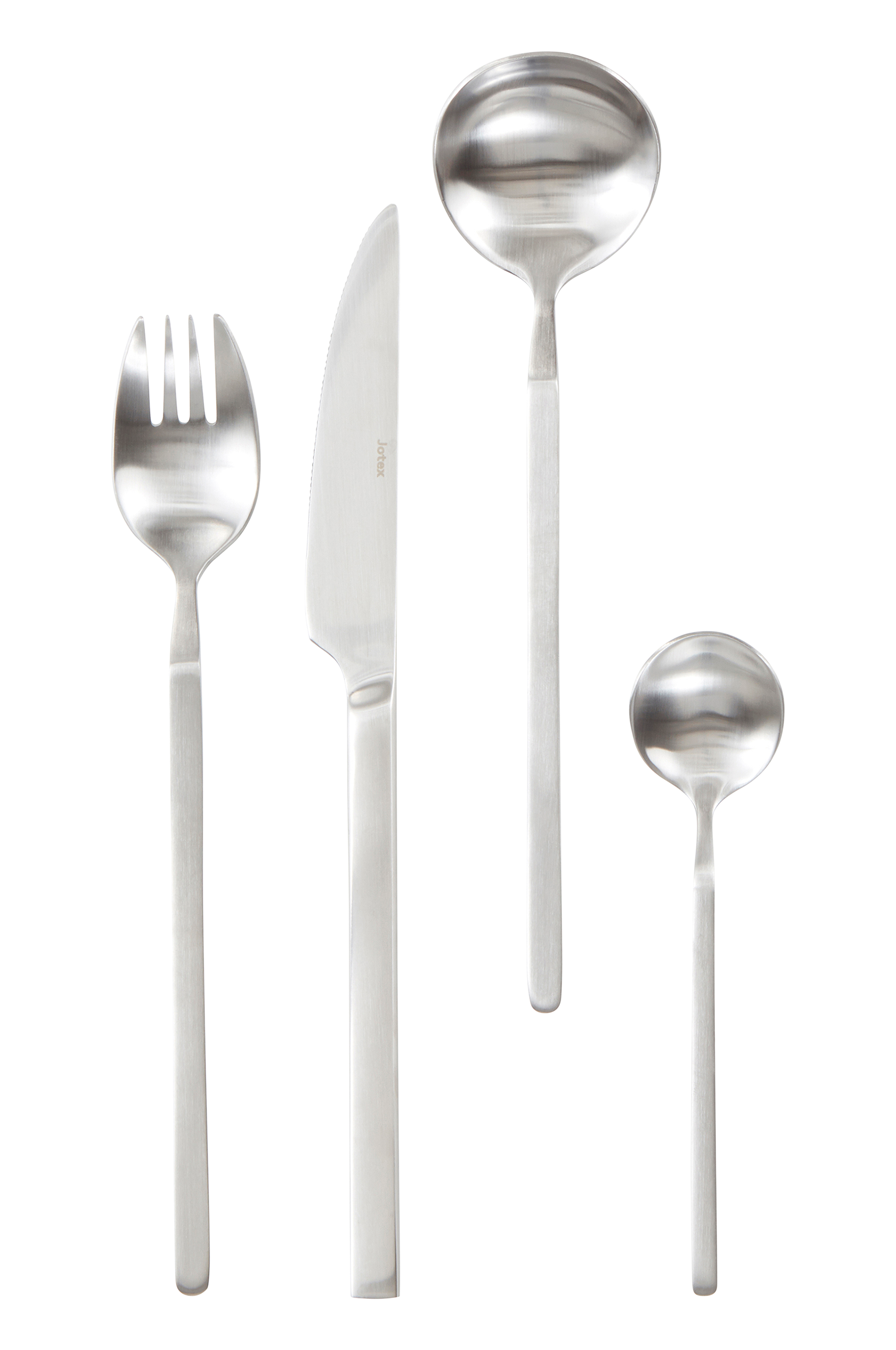 Bestikk i 16 deler i rett og stilrent design med avrundet form på skje og gaffel. Inneholder gaffel, kniv, skje og teskje, 4 av hver. ASTERA er i en moderne stil, med et nedtonet design.