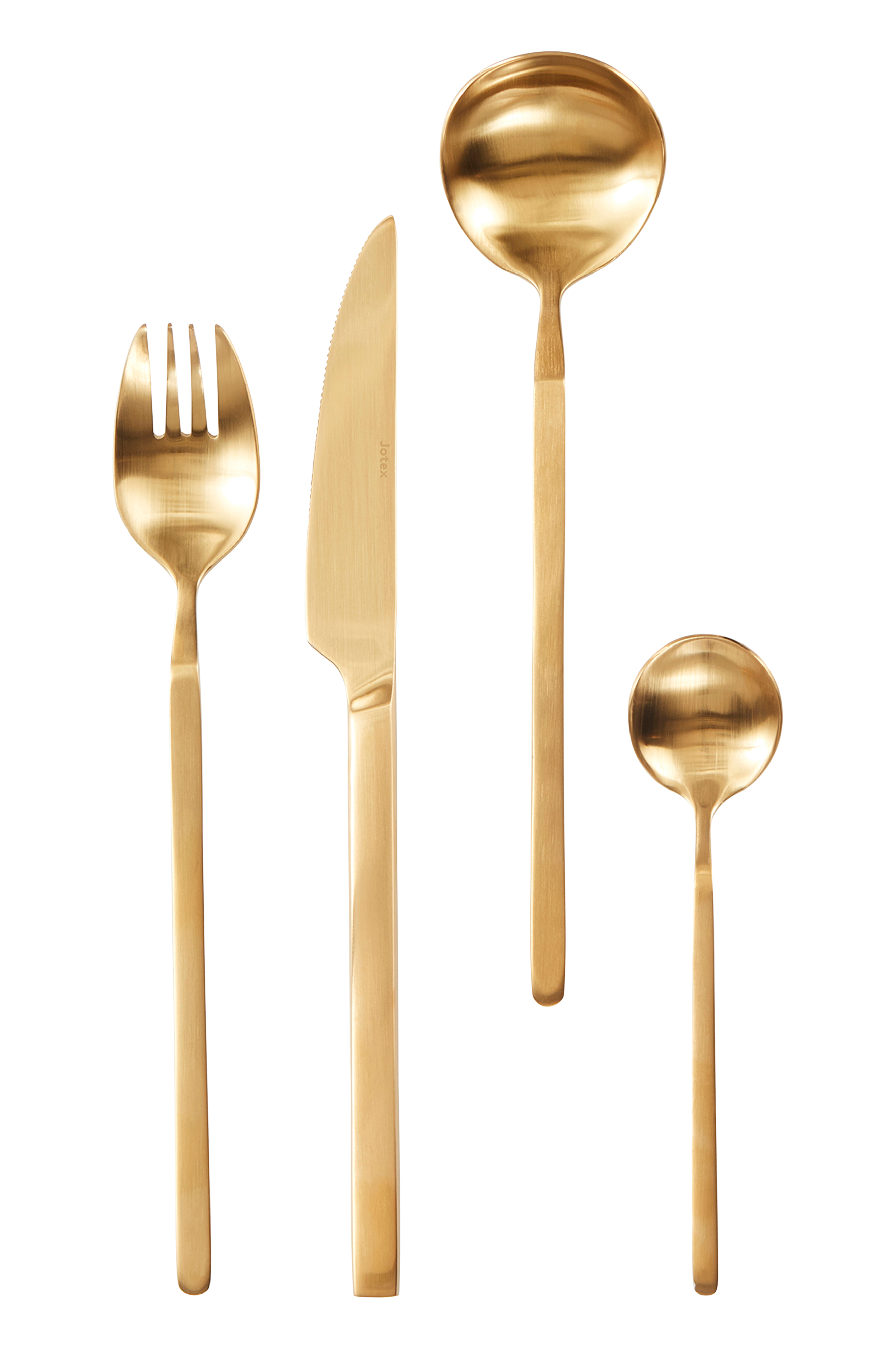 Bestikk i 16 deler i rett og stilrent design med avrundet form på skje og gaffel. Inneholder gaffel, kniv, skje og teskje, 4 av hver. ASTERA er i en moderne stil, med et nedtonet design.