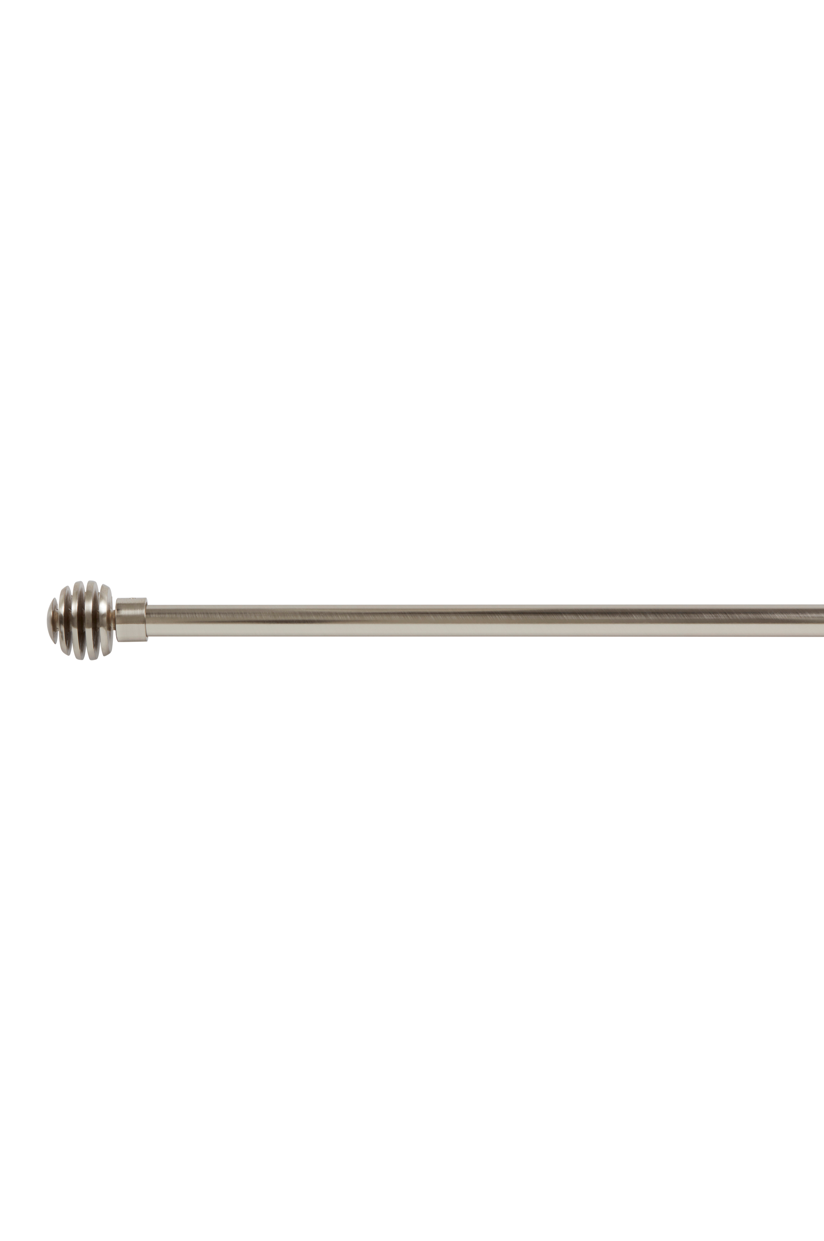 Gardinstang med stang og holder av jern og endeknotter av formstøpt sinklegering. Kirsch AURA er i klassisk og tidløs design. Gardinstangen har regulerbar bredde slik at du ikke trenger nøyaktig standardmål på vinduet. Regulerbare holdere gjør at du selv kan stille inn veggavstanden 10-15 cm, slik at gardinen kan henge fritt og ikke hvile mot vindusbrettet. Settet er komplett med 1 regulerbar gardinstang, 2 endedekorer, 2 regulerbare veggfester, plugg og skrue. Husk at det er underlaget som bestemmer hvilken type festemetode som er best egnet ved montering.