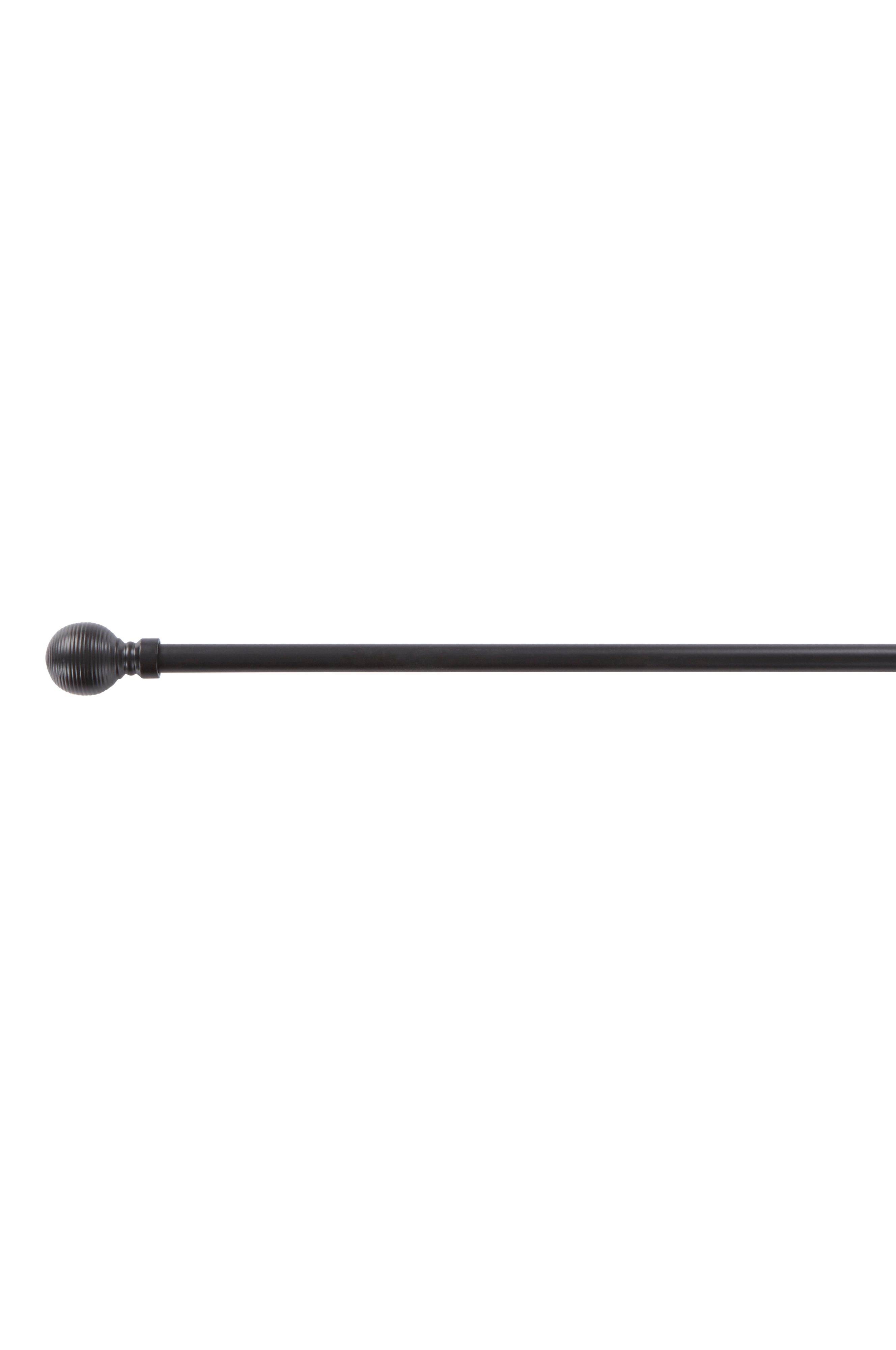 Gardinstang av jern og aluminium. BAILLIE har runde endeknotter med smale teksturstriper, knottene skrues på stangen. Fem veggfester inkludert. Alle fem veggfester skal brukes, slik at stangen blir stabil ved montering. Husk at det alltid er underlaget som bestemmer hvilken type festemetode som er best egnet ved montering.