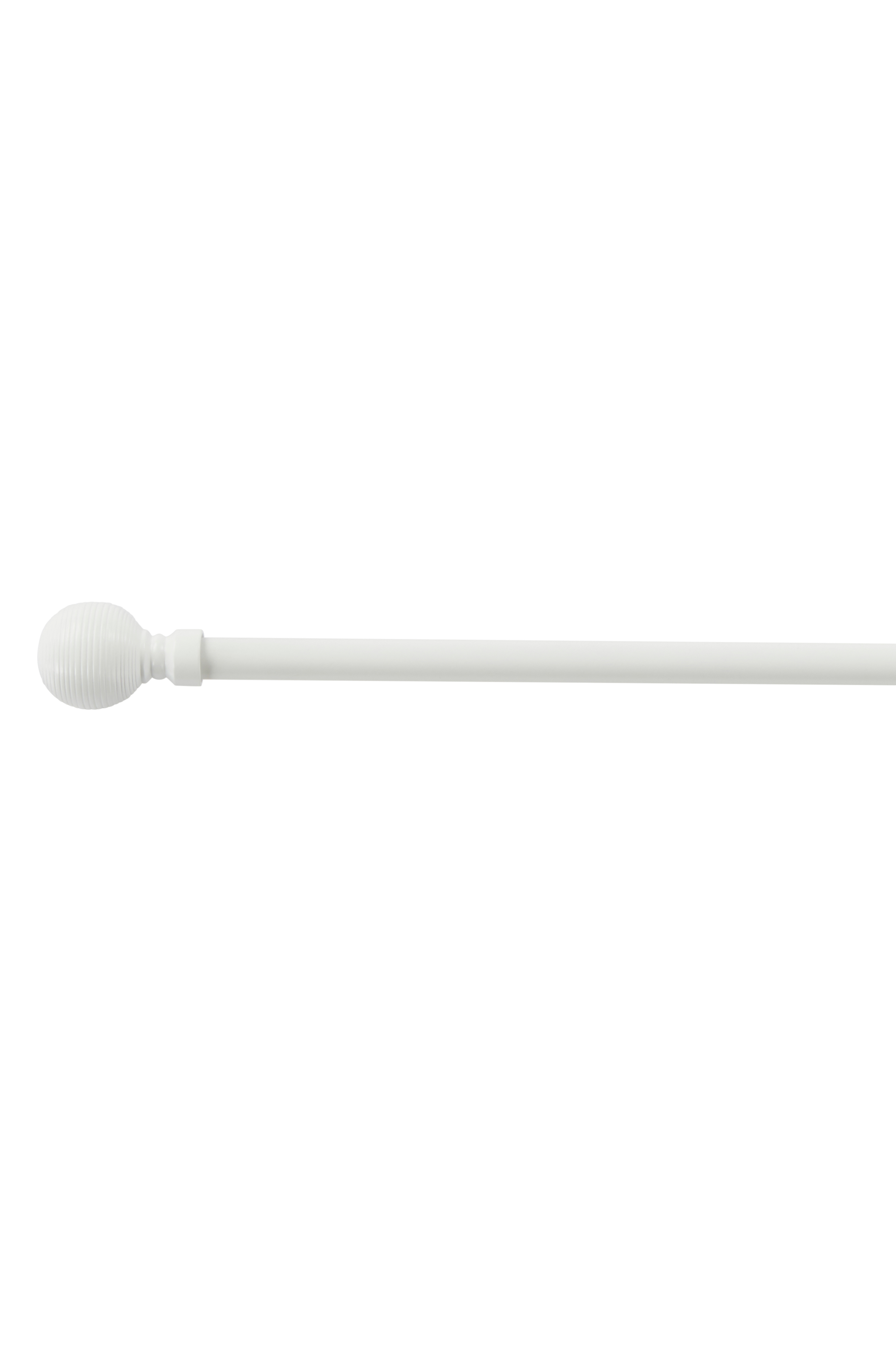 Gardinstang og endeknotter av metall. BALISTA har en rund endeknott med strukturstriper i hver ende. Endeknottene skrues på stangen. To veggfester, skruer og plugg inkludert. Husk at det alltid er underlaget som bestemmer hvilken type festemetode som er best egnet ved montering.