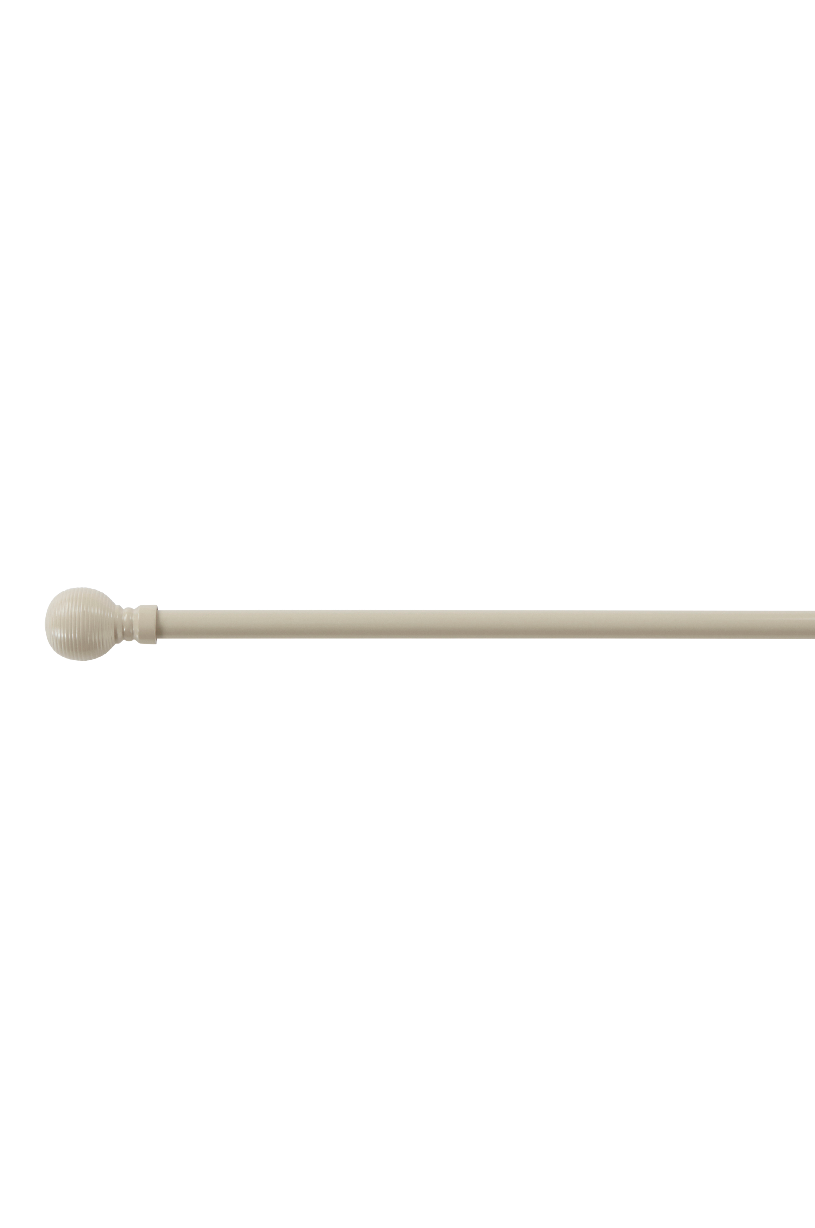 Gardinstang og endeknotter av metall. BALISTA har en rund endeknott med strukturstriper i hver ende. Endeknottene skrues på stangen. To veggfester, skruer og plugg inkludert. Husk at det alltid er underlaget som bestemmer hvilken type festemetode som er best egnet ved montering.