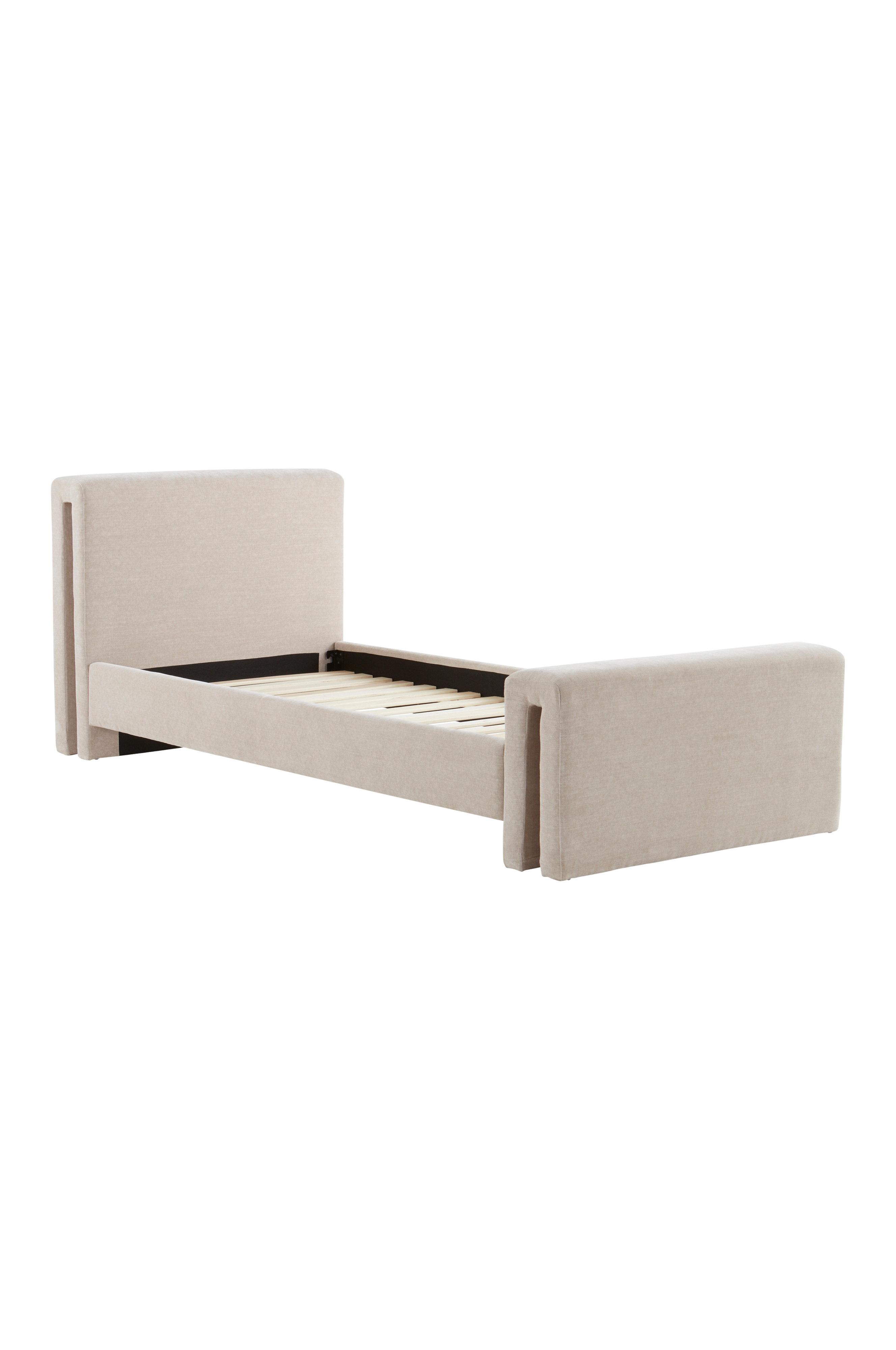 Flott og luksuriøs sengeramme som tar plass og blir fokus på soverommet. Sengegavlen og fotenden er brettet dobbel i svært spesiell design. Gavlene har et fin detalj med effektfull åpning et lite stykke inn i bretten sett fra siden, noe som gir lekker 3D-effekt. Sengerammen er kledd med fint chenillestoff av polyester, og rammen er behagelig vattert og myk. Stoffet har en slitestyrke på 20 000 Martindale. Det er deilig å sitte og lese i sengen, lent mot det myke ryggstøet. Fotgavlen er behagelig å sitte på. Stammen er produsert av FSC-sertifisert furu og kryssfiner. Sengerammen har ribbebunn av furu. Kompletter med ønskede madrasser. Madrass er ikke inkludert. Noe montering kreves. Monteringsanvisning medfølger.