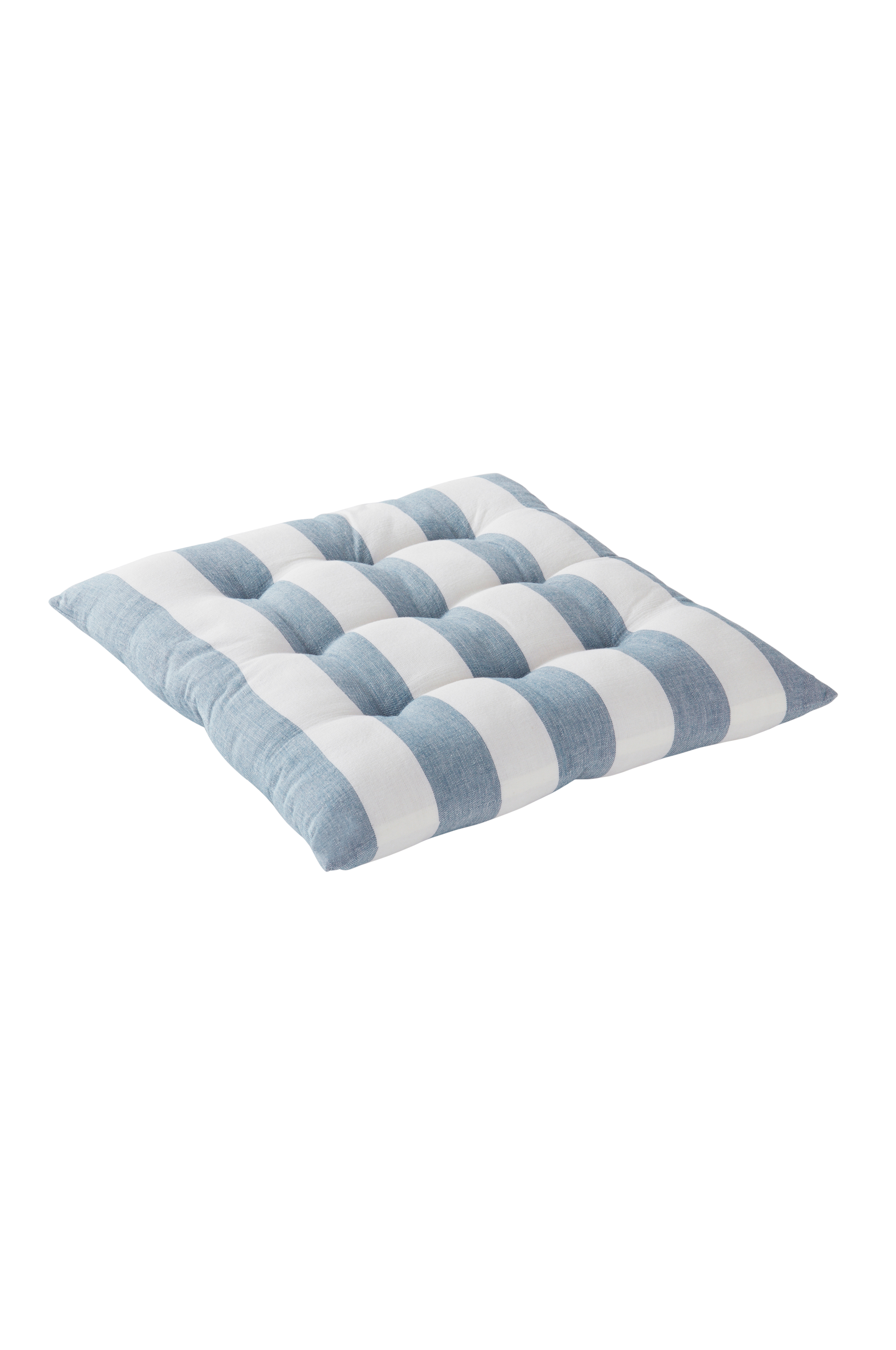 Behagelig sittepute i stripet eller ensfarget bomull med dyptheftede knapper.