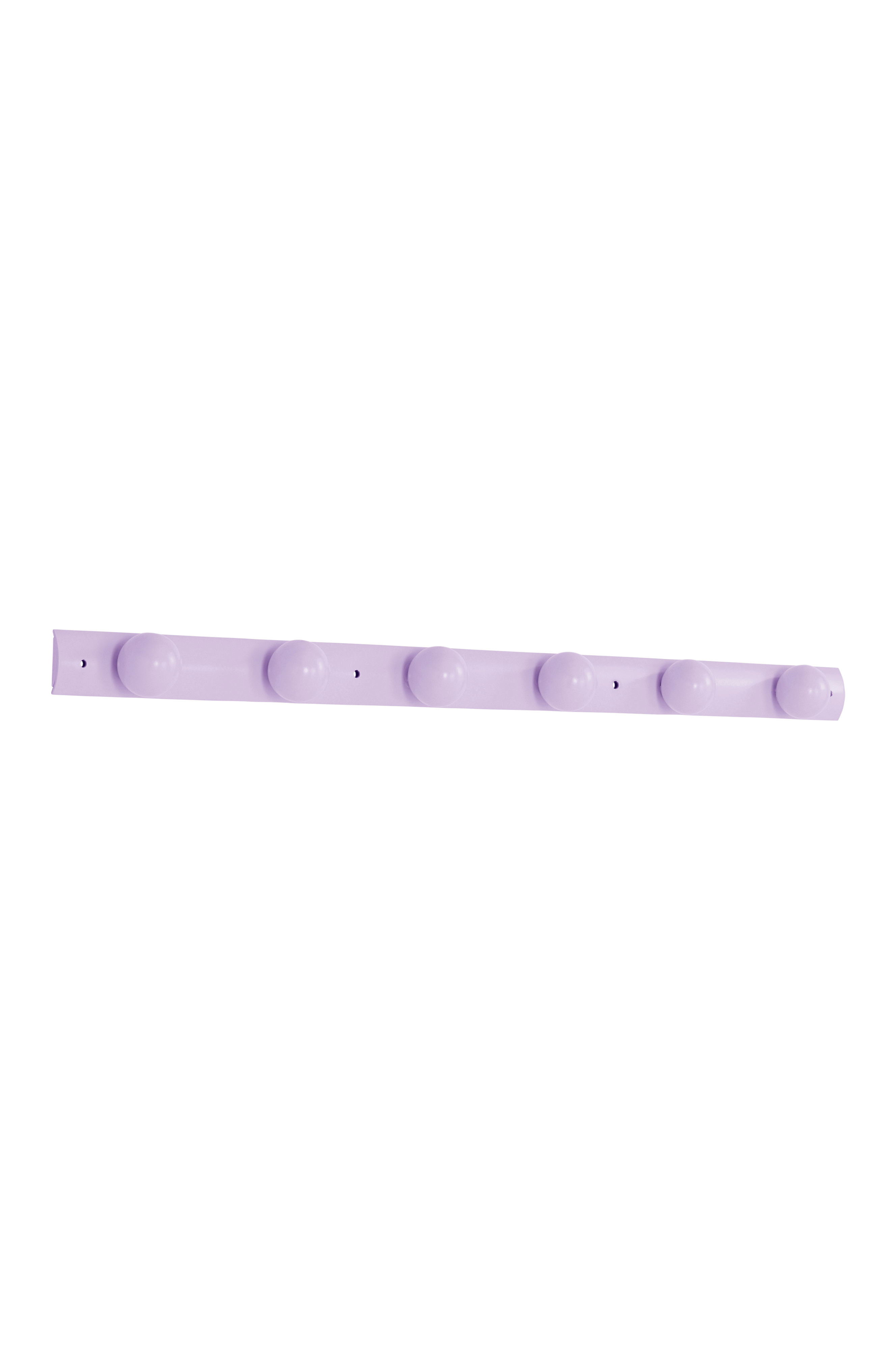 Knaggrekke av stål i leken design med seks runde knagger. Knaggrekken er pulverlakkert. Knaggrekken har fire hull og skrues fast i veggen. Skruer medfølger ikke.