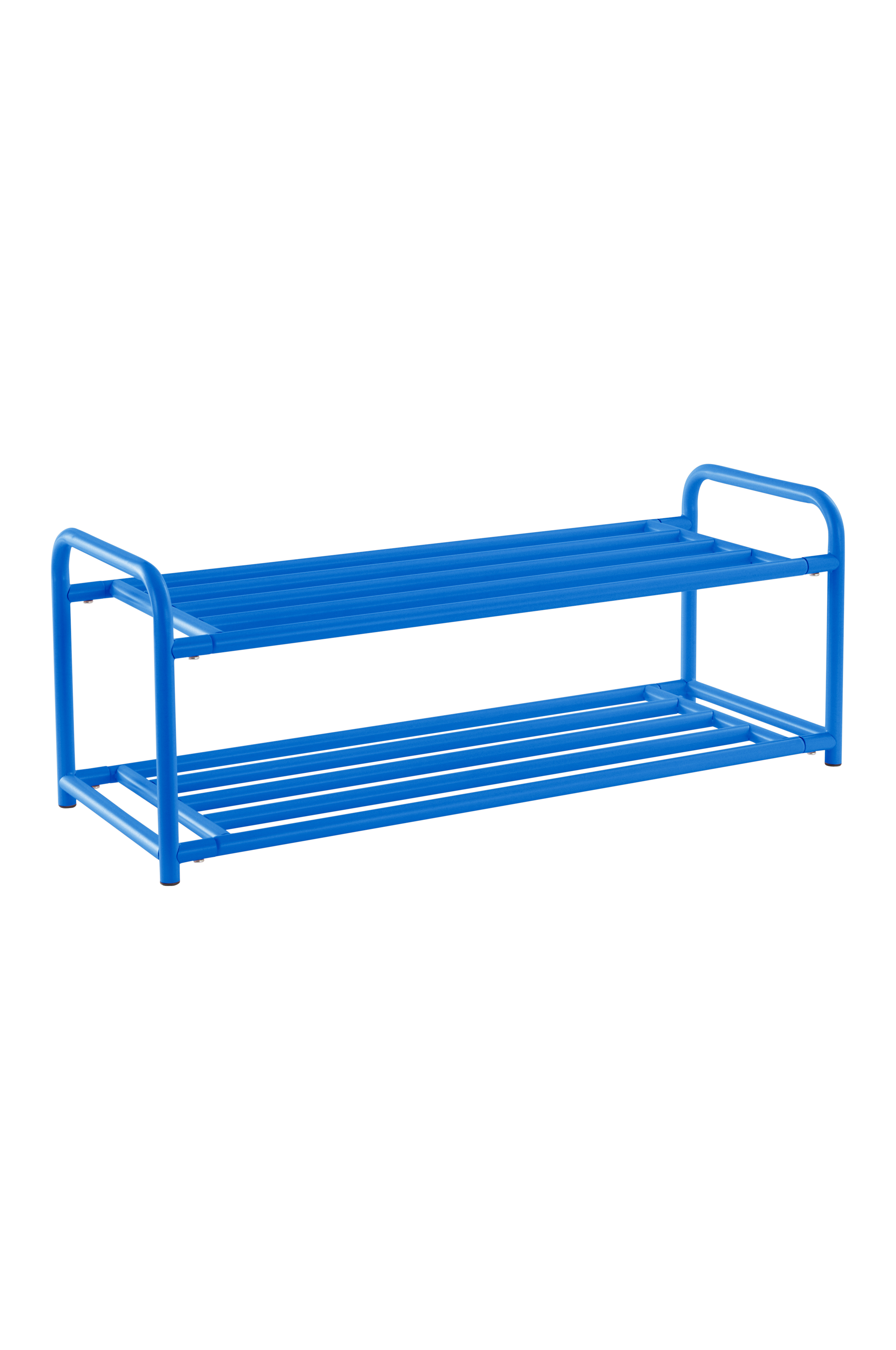 Skohylle av stål i leken, avrundet design med to skohyller. Skohyllen er pulverlakkert. Noe montering kreves. Monteringsanvisning medfølger.