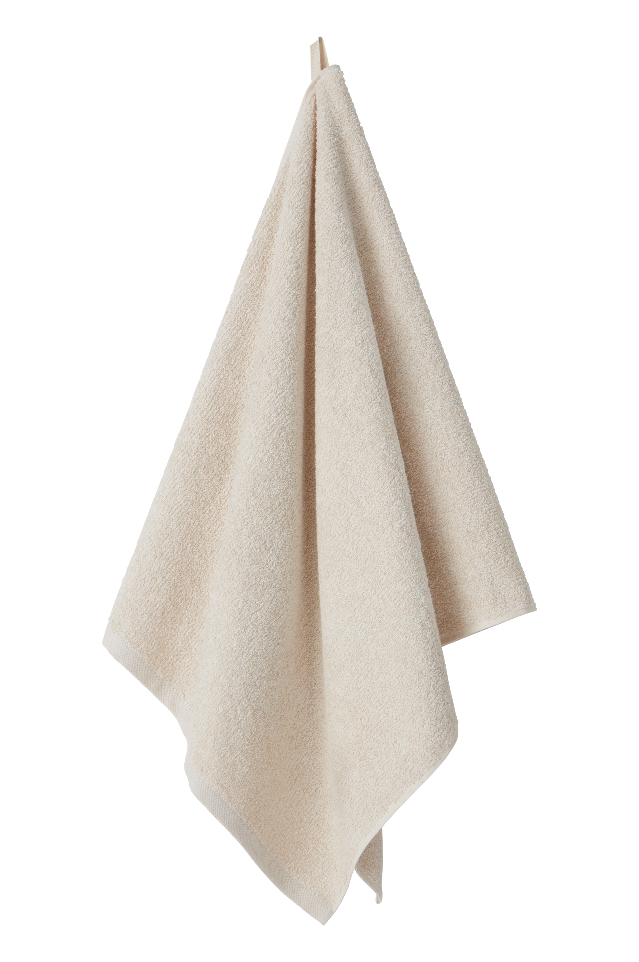 1-pk badehåndkle i myk bomullsfrotté som er en blanding av like deler økologisk bomull og gjenvunnet bomull. Badehåndkleet er lett melert med ulike tekstur på begge sider. BELLFI er i en fin, mild, nøytral farge som matcher fint på de fleste baderom. Gramvekt 450 g/m².