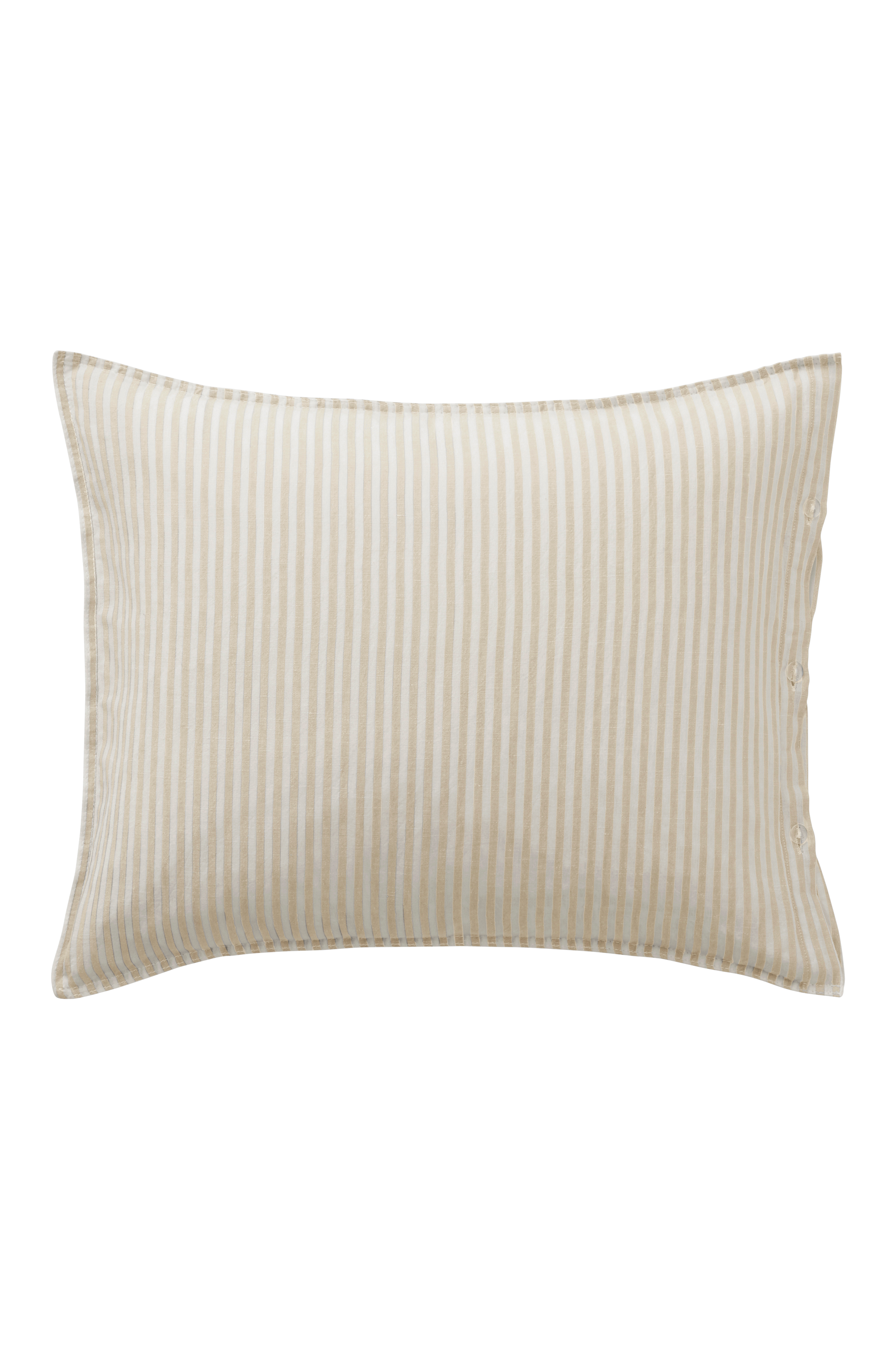 1-pk stripete putevar i en deilig blanding av bomull og lin. Sengetøyet i serien BETLEY STRIPE er i en herlig kvalitet som henter fordelene fra både bomull og lin når du rer opp med dem. De smale stripene går i to harmonerende fargenyanser. Putevaret har dobbeltsøm som skaper en fin liten vinge rundt. Lukkes med små plastknapper. Vekt 170 g/m². Trådtetthet på 74 tc. (Trådtettheten forteller om antallet tråder, thread counts, pr. kvadrattomme i et stoff. Jo høyere trådtetthet, desto høyere kvalitet. Unntaket er lin som ofte veves løsere for å få den riktige følelsen.)