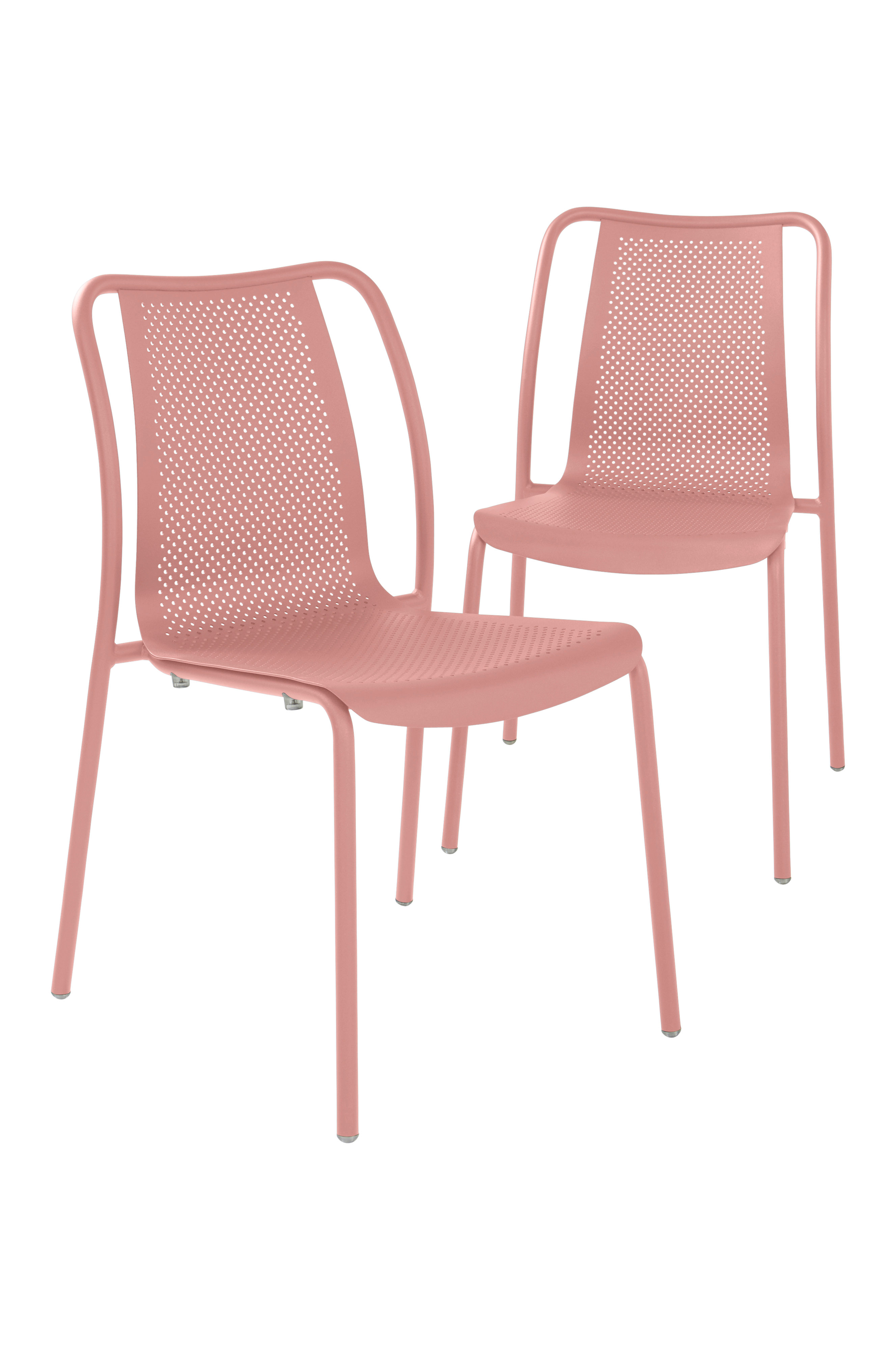 2-pk utestoler av pulverlakkert aluminium med perforert hullmønster i setet. Overflatebehandlingen er matt og blender ikke i sterkt lys. BIARRITZ er en enkel og stilren stol som passer perfekt rundt spisebordet på uteplassen. Aluminium har gode egenskaper som gjør at møblene passer utmerket utendørs, det ruster ikke og har lav vekt. Stolen gjør seg også fint innendørs. Stolene er stabelbare, noe som forenkler vinterlagringen. Oppbevar gjerne møblene innendørs i vinterhalvåret for å unngå unødvendig slitasje.