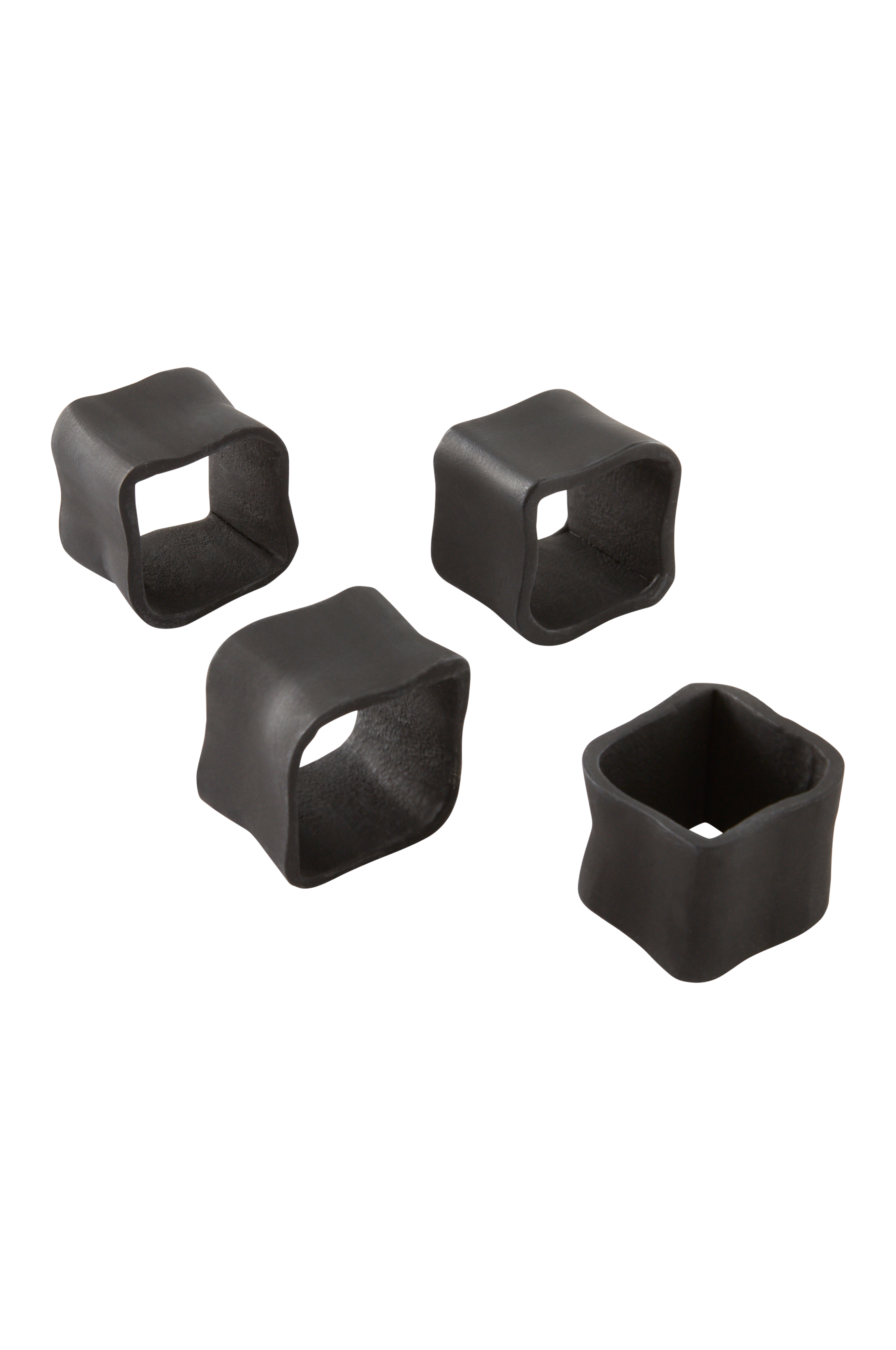 4-pk serviettringer av aluminium. De firkantede og samtidig mykt formede serviettringene med tekstilservietter i gjør et dekket bord ekstra pent. Serviettringene er pulverlakkerte.
