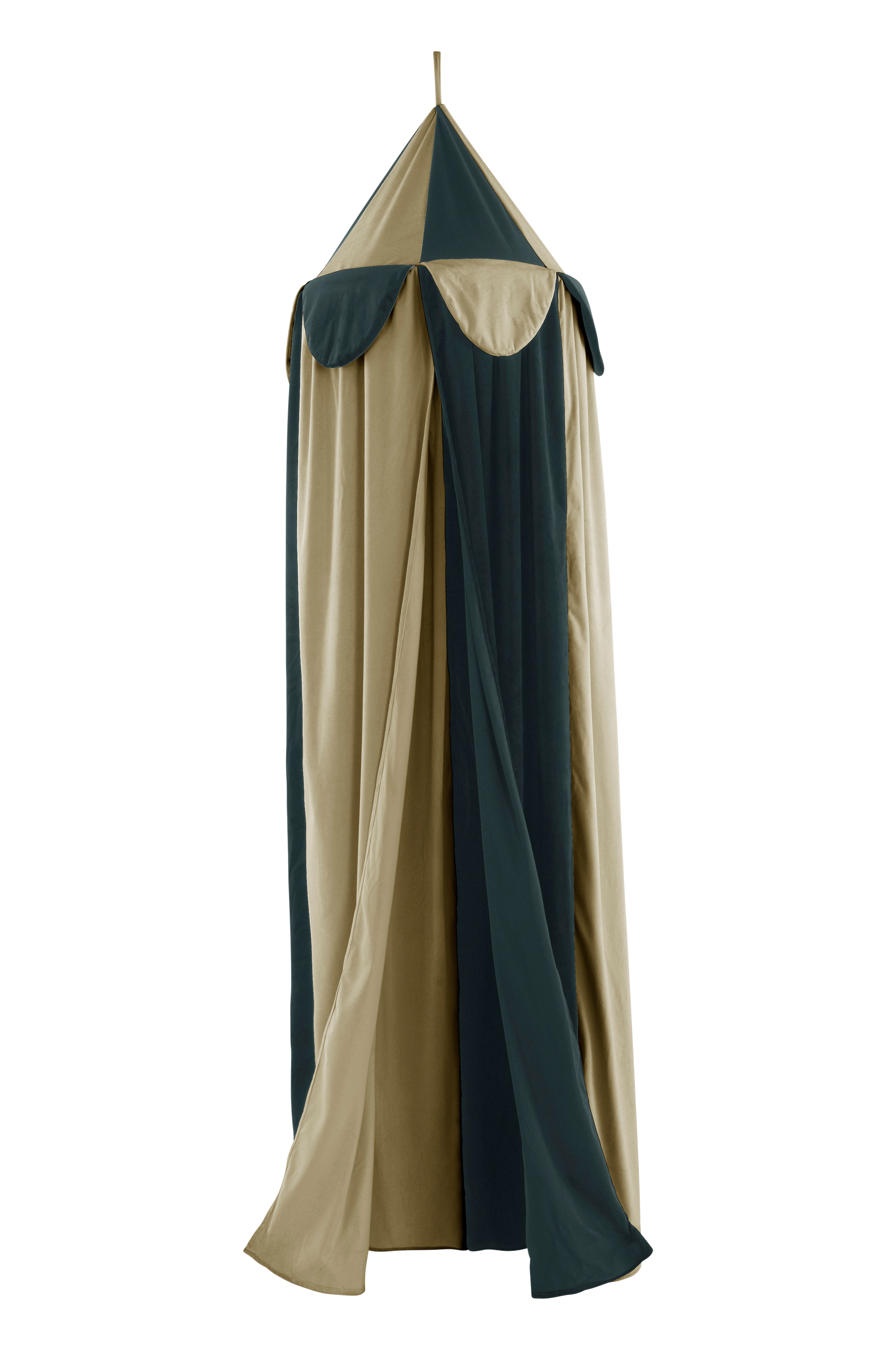BLOCK er en tofarget sengehimmel i fløyel. Stoffet er av polyester, og halvparten kommer fra gjenvunnet materiale. Sengehimmelen har skjult metallring øverst. Den skal tas ut når stoffet skal vaskes. Sengehimmelen er åpen både i forkant og bakkant, noe som er en fordel hvis du ønsker en sengelampe på veggen bak sengen. Heng opp sengehimmelen med stoffløkken i toppen på en krok i taket på barnerommet for å skape en koselig og lun atmosfære over barnesengen.