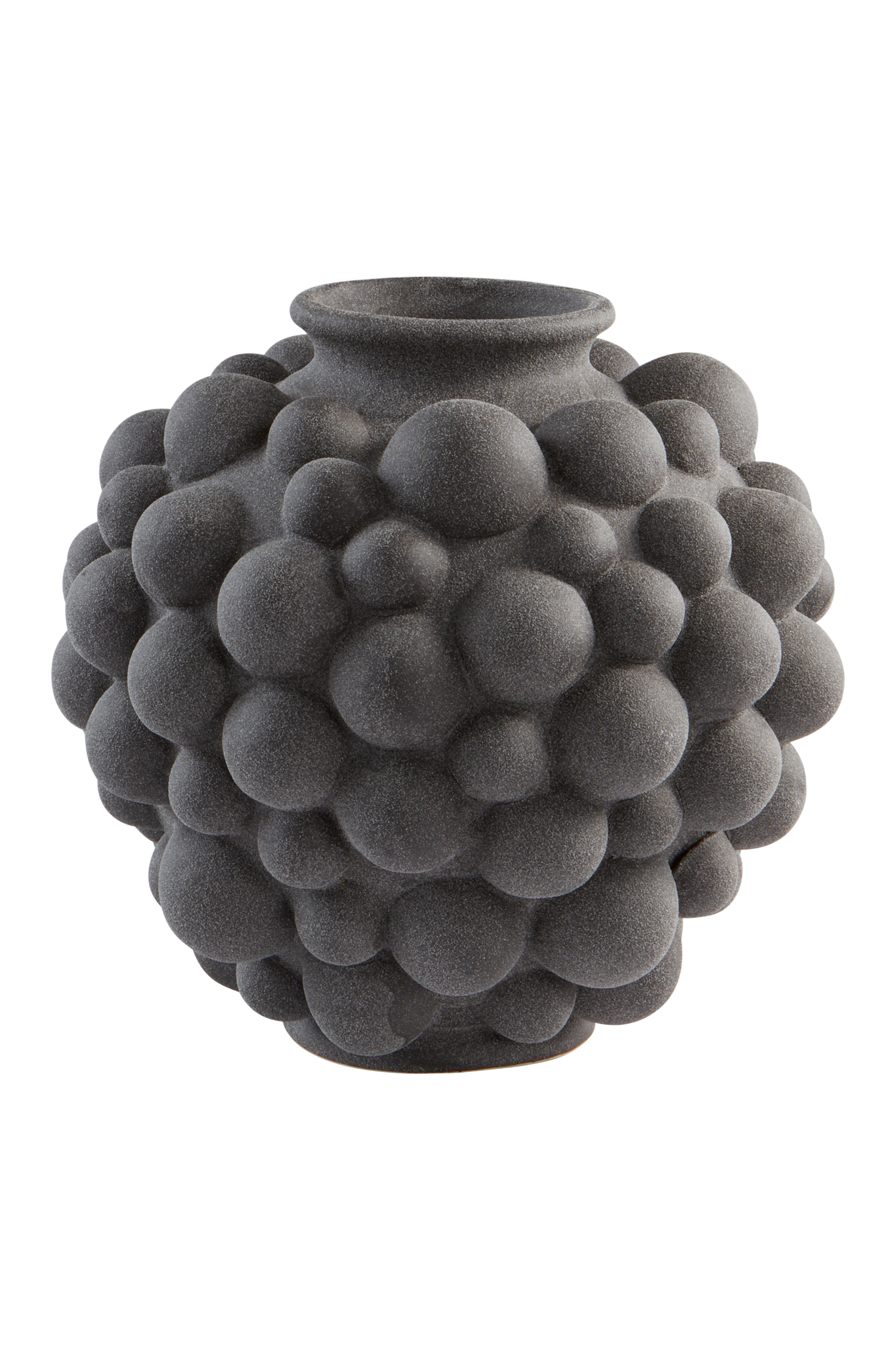 Håndlaget dekorvase av keramikk. En stilren vase med matt finish som minner om stein. Innsiden er glasert. Et visst avvik kan forekomme ettersom vasen er håndlaget. Keramikk kan slippe gjennom fukt.