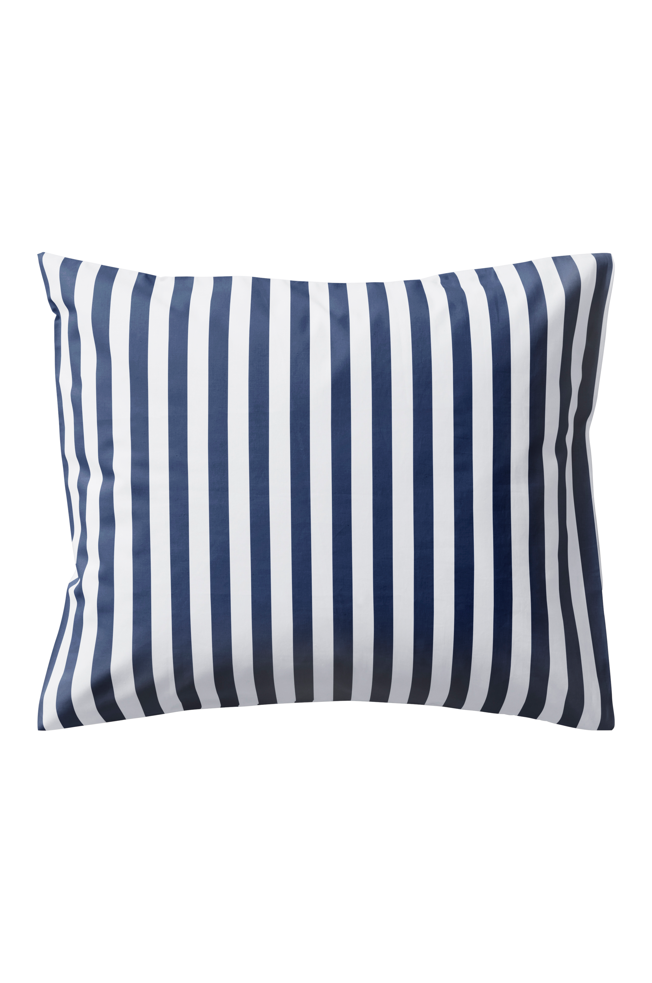 Smalstripet putevar i økologisk bomull. De klassiske stripene fungerer like godt for små og store. Stoffet har et behagelig trykk, bomull er svalt og behagelig mot huden, og følelsen av å krype ned i en nyredd seng er vanskelig å slå. Stripemønsteret er trykt i lyse, muntre farger blandet med annenhver stripe hvit.