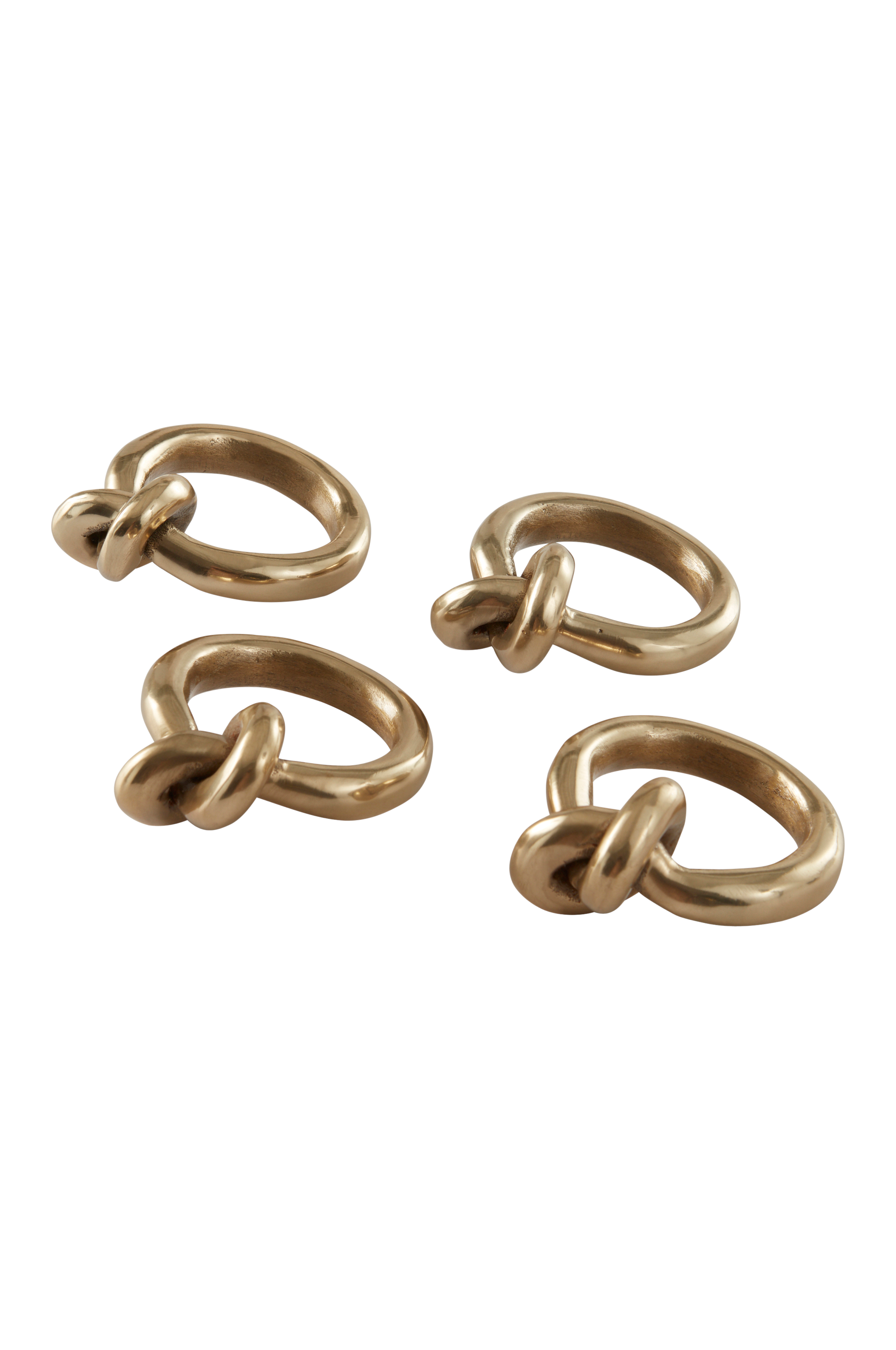 4-pk serviettringer av aluminium. Den lett uregelmessig formede ringen har en dekorativ knute, og serviettringen får historisk følelse. Fargen er pulverlakkert og har matt overflate.