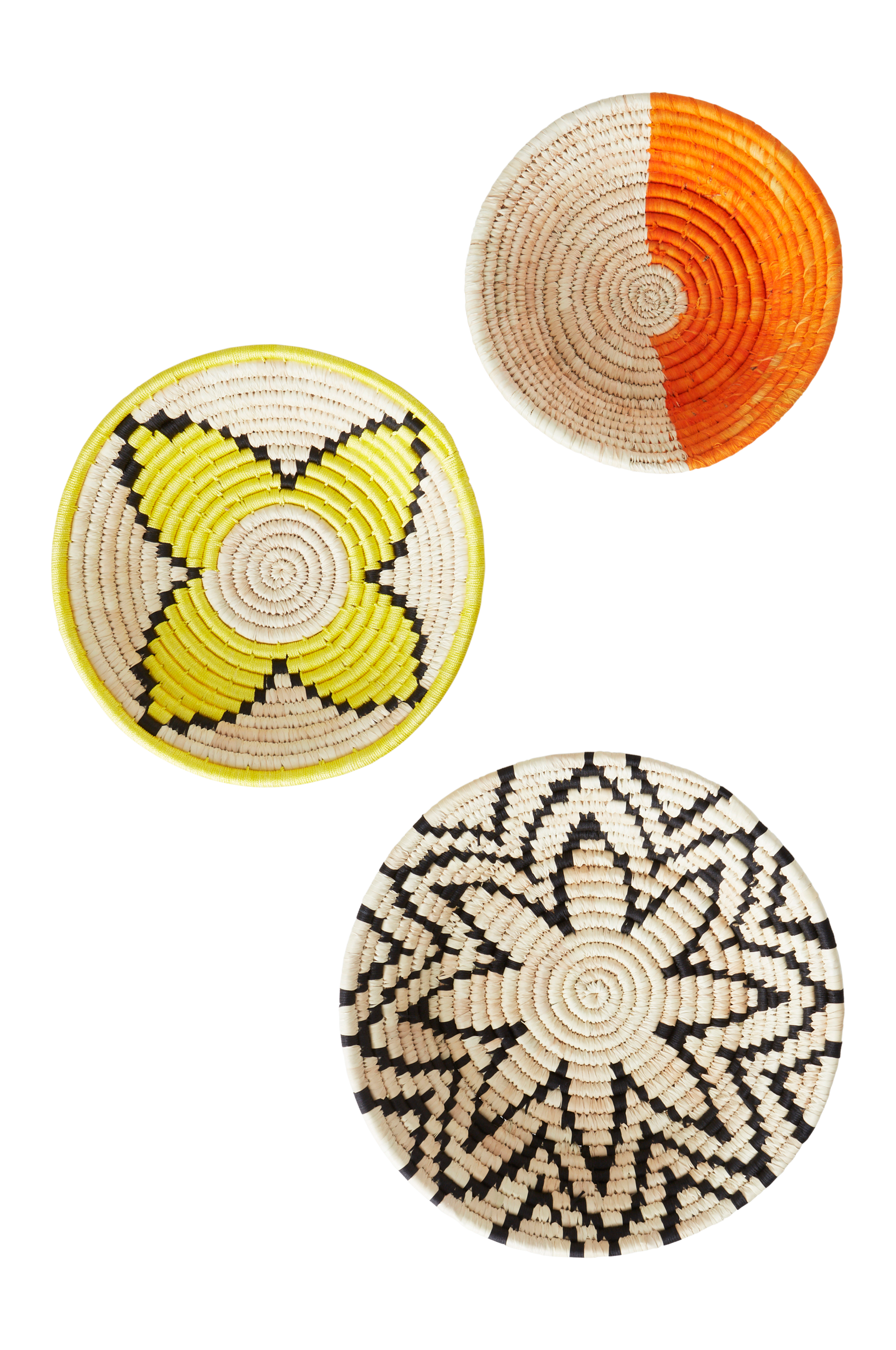 3-pk veggdekor håndlagd av sabaigress, palmeblad og bomullsgarn. De tre har ulike motiver og størrelse. Det fine håndverket gjør hver dekor unik.