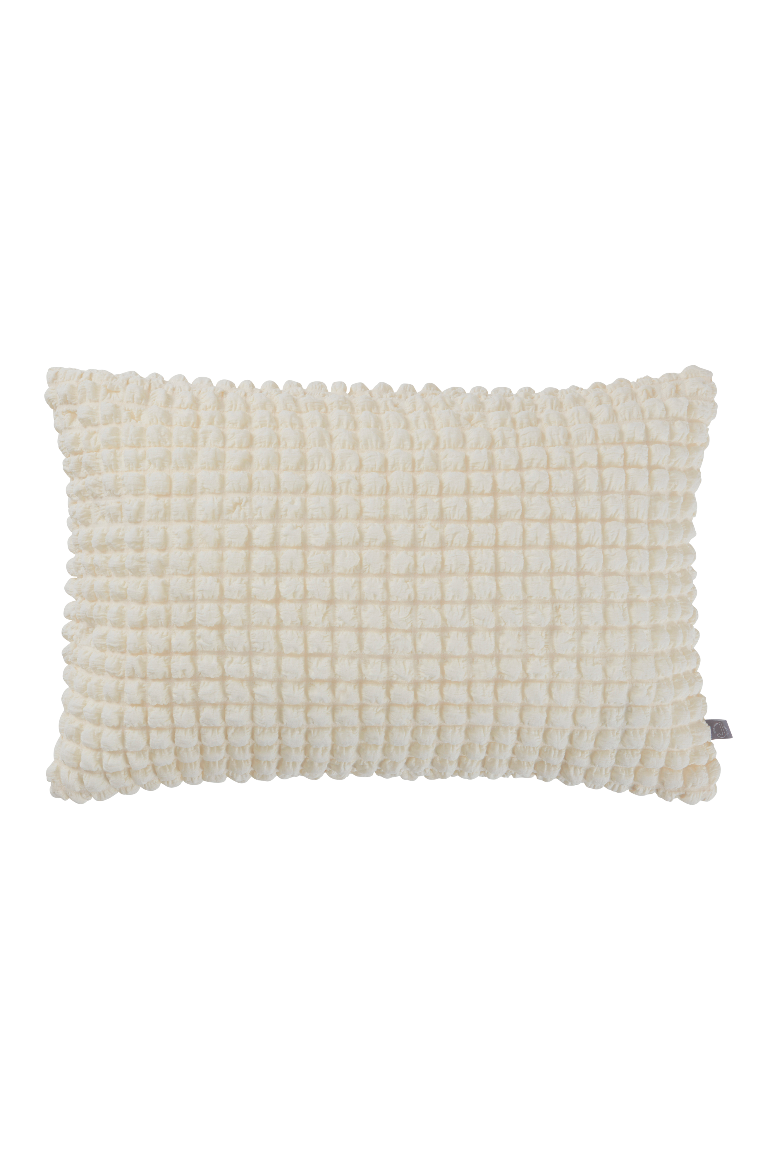 Putetrekk i et boblete, oppsiktsvekkende stoff av polyester med iblandet spandex. Kvaliteten i kombinasjon med veveteknikken gir stoffet den lekre effekten. Det har myke bobler og er dessuten elastisk. Putetrekket er fôret med et vevd stoff. Skjult glidelås nederst.