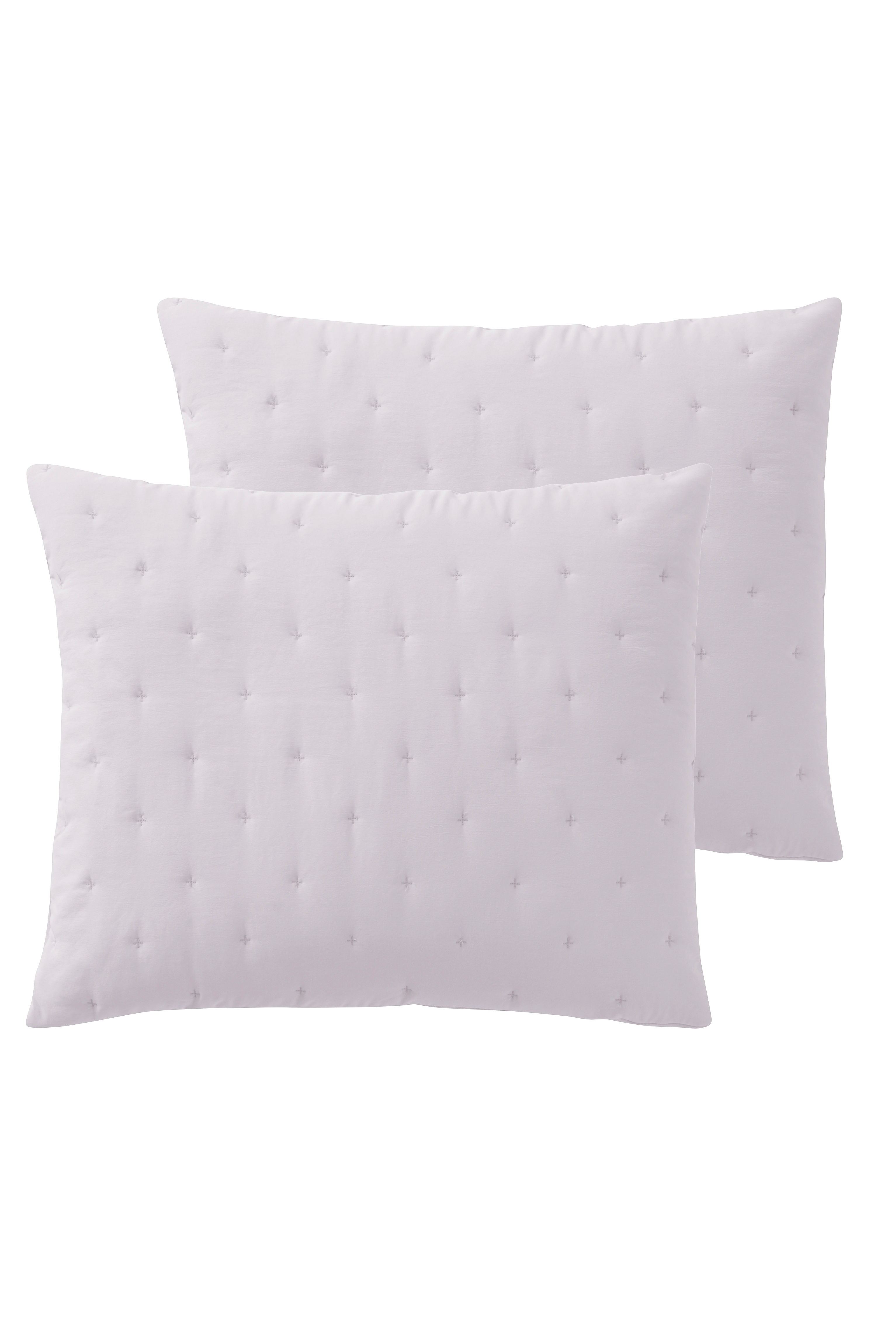 2-pk putetrekk sydd i myk polyester som er vasket for å få en deilig følelse. Putetrekkene har enkel quilting av broderte, små kryss som danner et diskre mønster på forsiden. Stoffet har en lett vattering som holdes på plass av quiltingen. Baksiden er glatt. Skjult glidelås på baksiden.