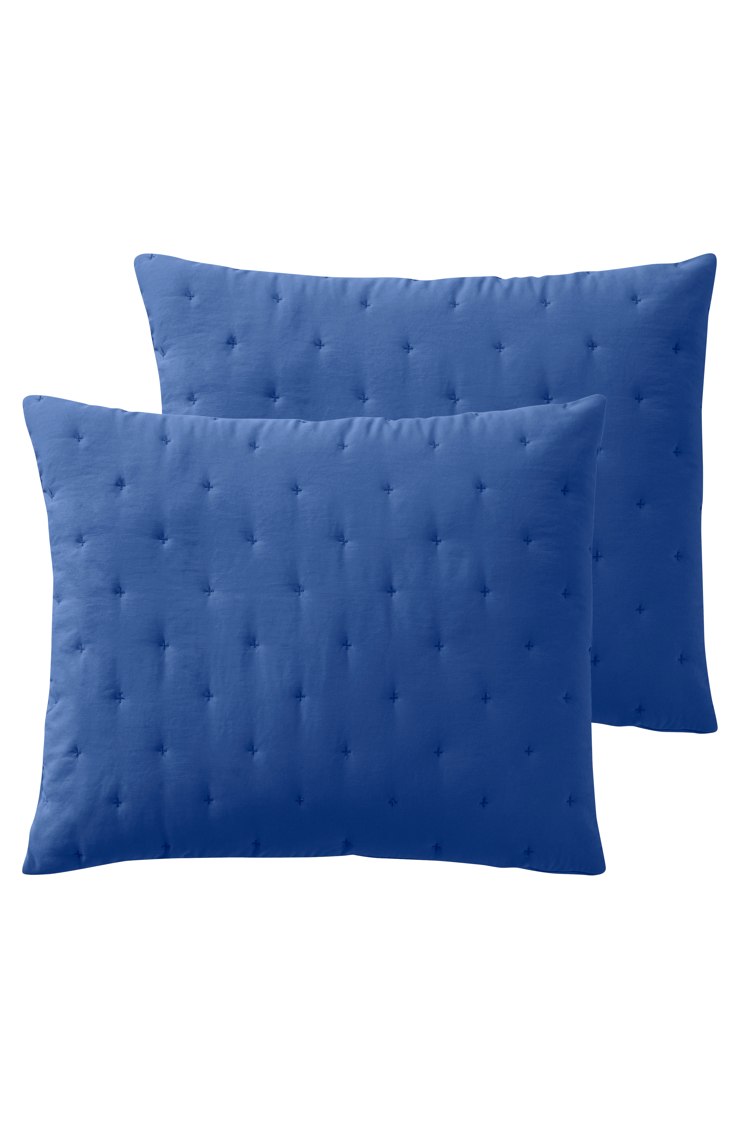 2-pk putetrekk sydd i myk polyester som er vasket for å få en deilig følelse. Putetrekkene har enkel quilting av broderte, små kryss som danner et diskre mønster på forsiden. Stoffet har en lett vattering som holdes på plass av quiltingen. Baksiden er glatt. Skjult glidelås på baksiden.