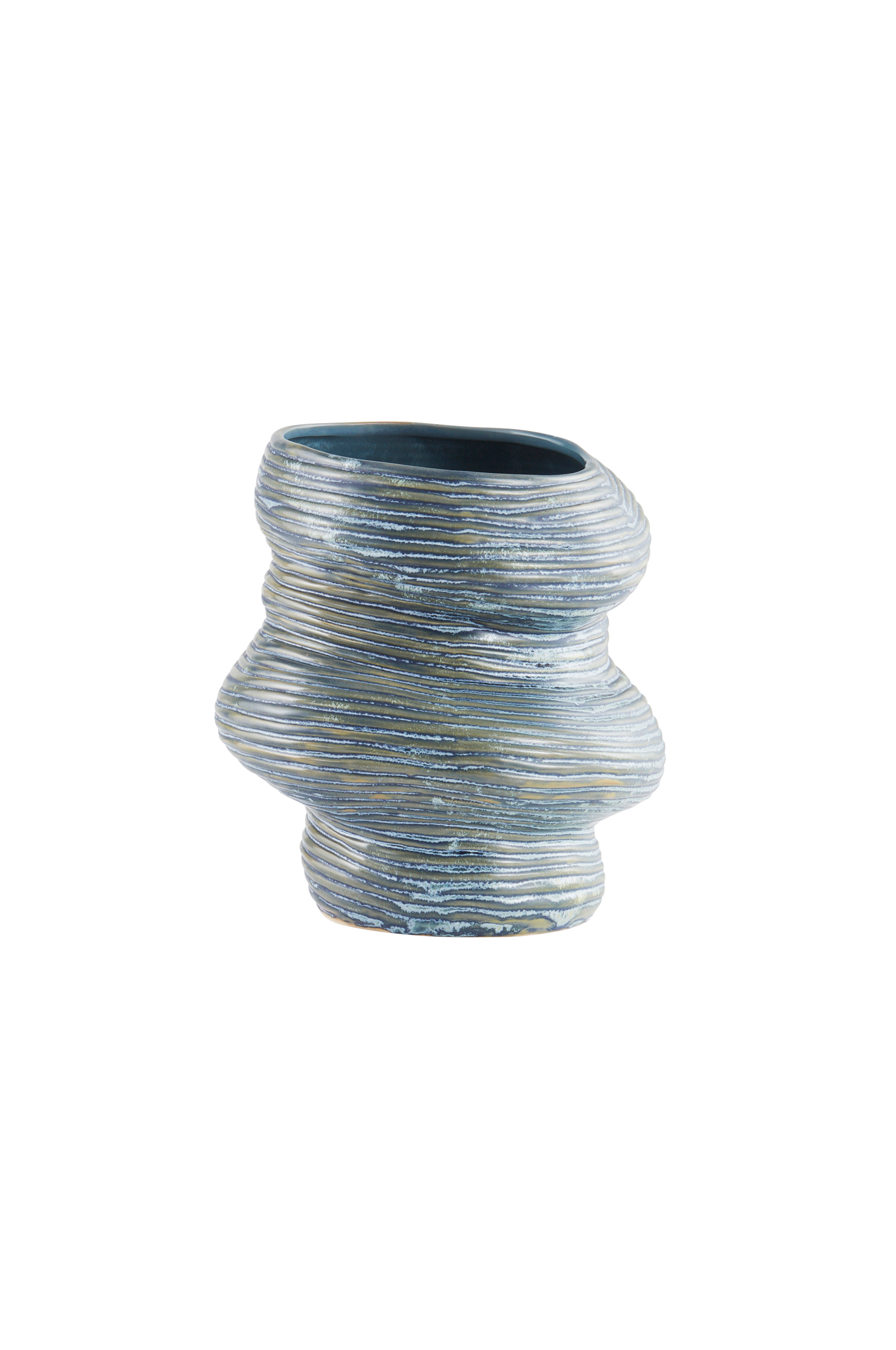 Håndlaget vase av keramikk. CASABLANCA er en dekorativ vase med fin glans og spennende form. Innsiden er også glasert. Et visst avvik kan forekomme ettersom vasen er håndlaget. Keramikk kan slippe gjennom fukt.