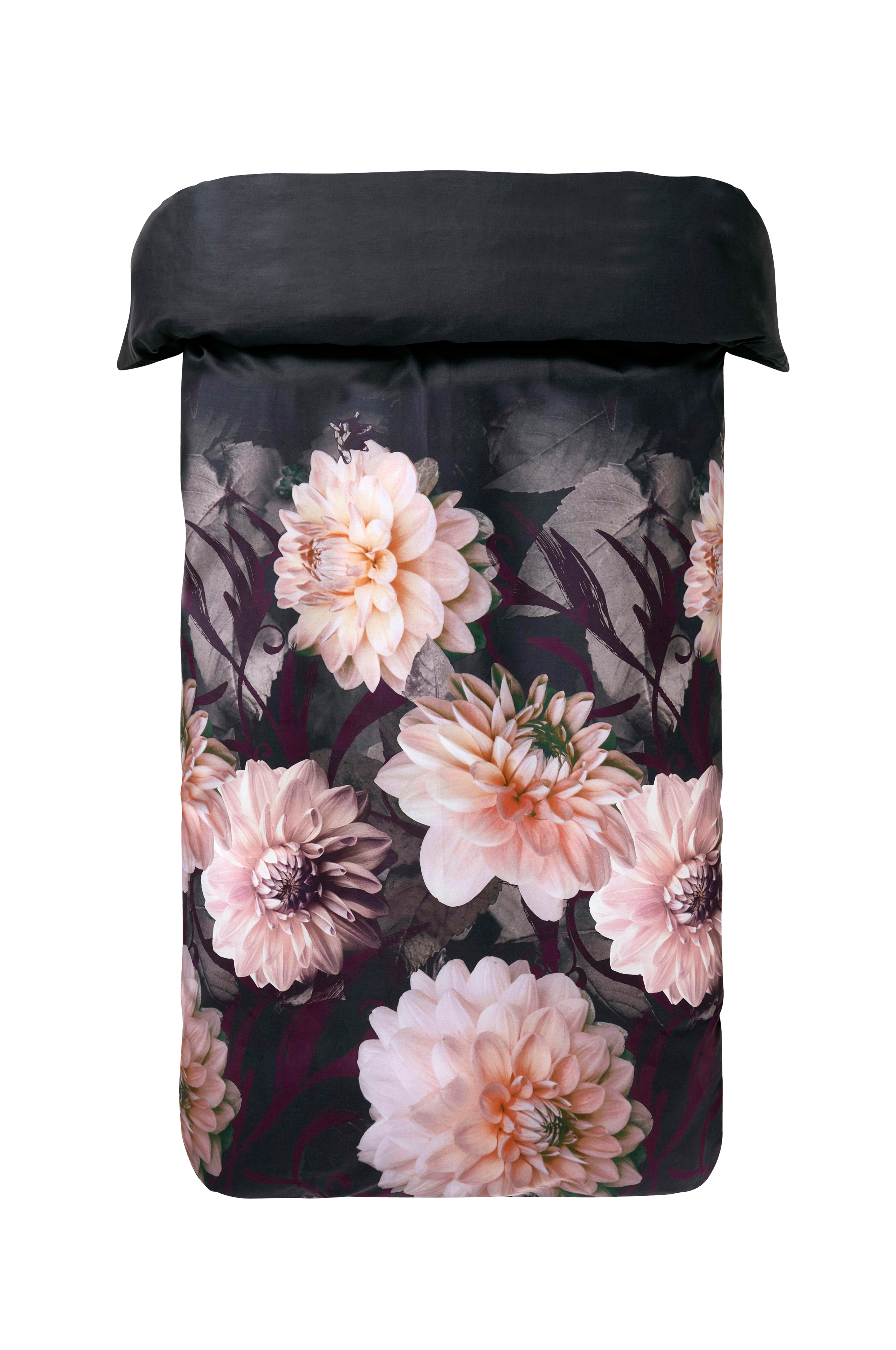 Dynetrekk i bomullssateng med digitaltrykt blomstermotiv. Sateng er et tett, glatt stoff med glans. Det digitale trykket gir et mykere og mer distinkt trykk med klarere fargegjengivelse. Store, vakre blomster gir soverommet en nytt, fresht inntrykk. Lukkes med plastknapper. Trådtetthet på 200 tc. (Trådtettheten forteller om antallet tråder, thread counts, pr. kvadrattomme i et stoff. Jo høyere trådtetthet, desto høyere kvalitet).