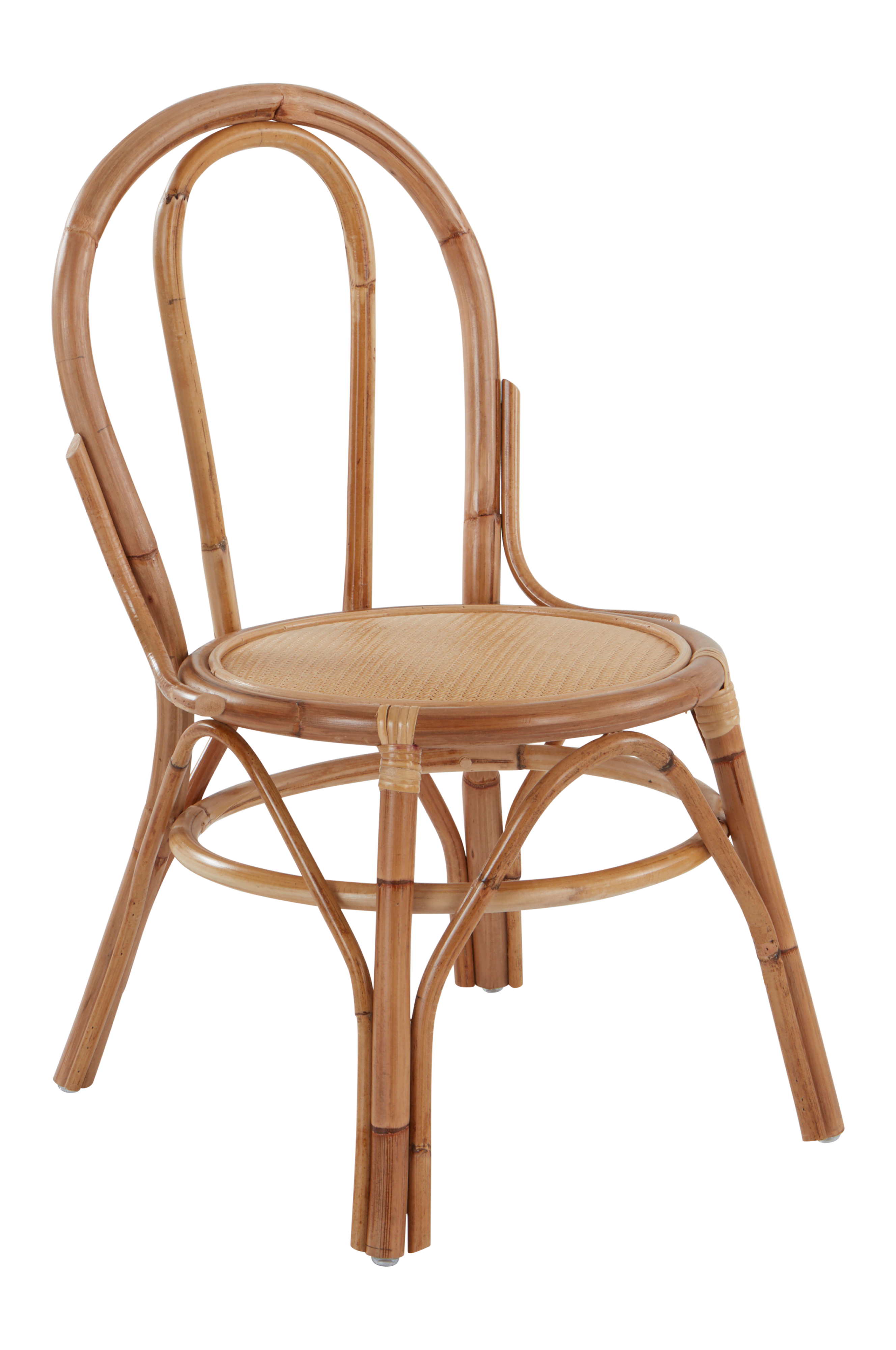Håndlaget barnestol i rotting med vannbasert lakk som gir en naturlig overflate og farge, slik at den fine rottingen fremheves. Stolen er i klassisk kafemodell, og er som en ordentlig stol i miniformat. Det er perfekt for små barn å få sitte på en stol som passer i størrelse. Håndverket gjør hver stol unik.